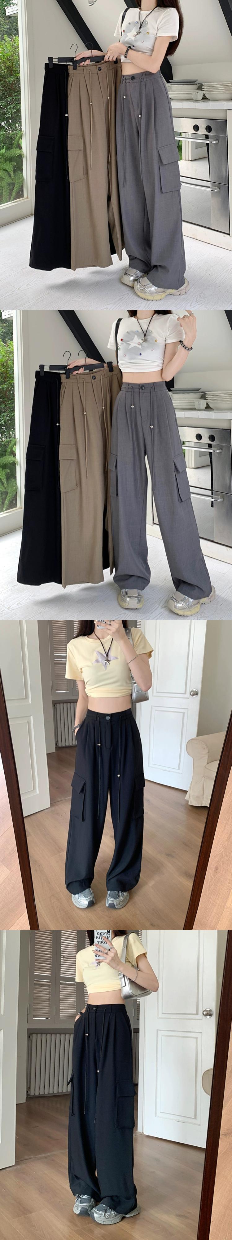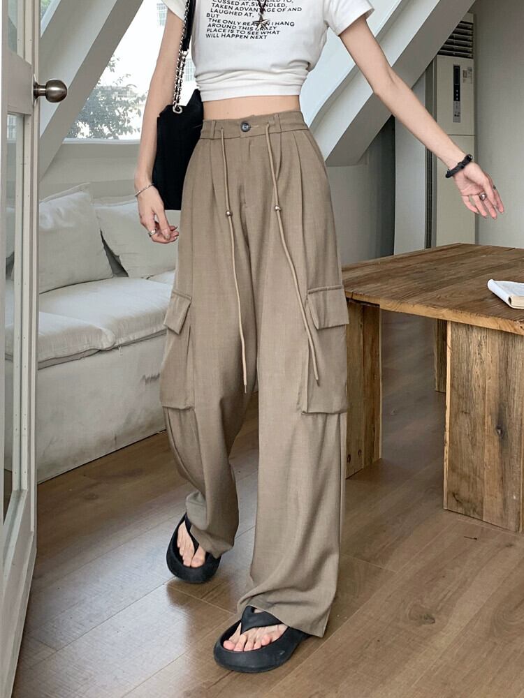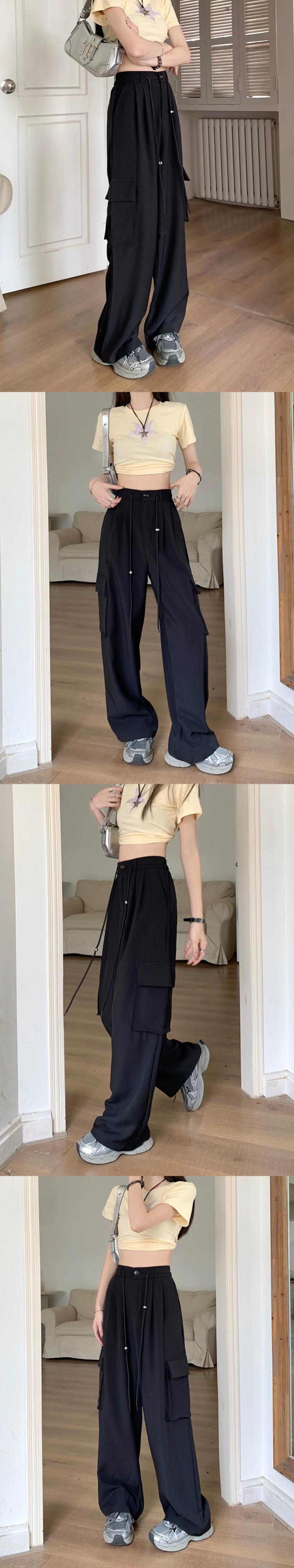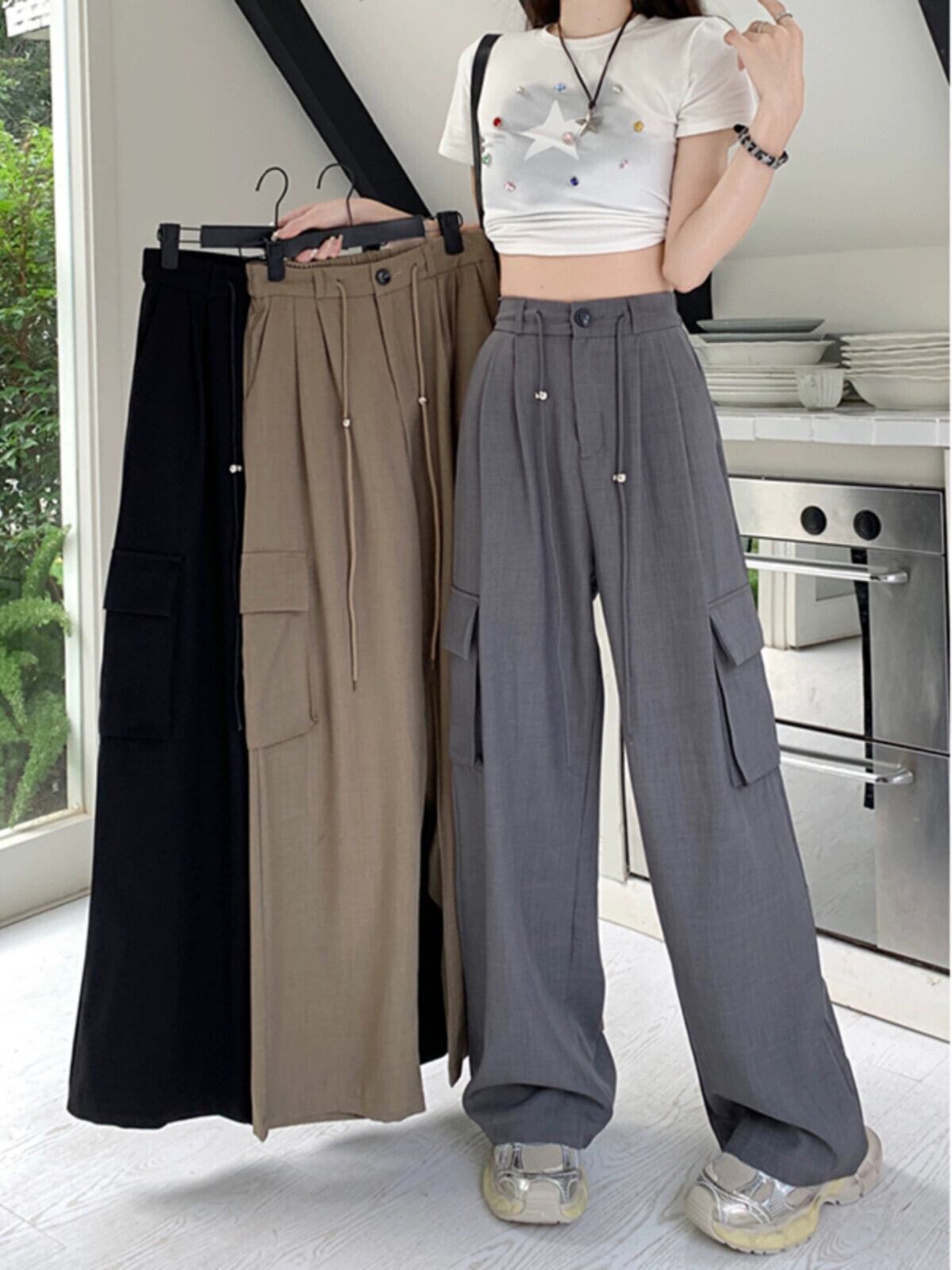 巾着ツーリングカジュアルパンツレディース夏バージョン2023新デザインセンスハイウエスト着痩せゆったりワイドレッグロングパンツ ハイウェスト サマー 夏物 missk33570565762