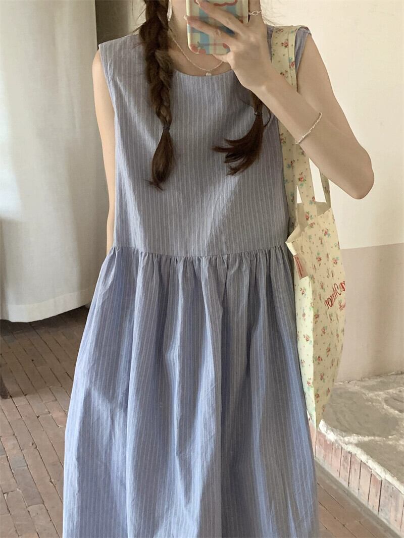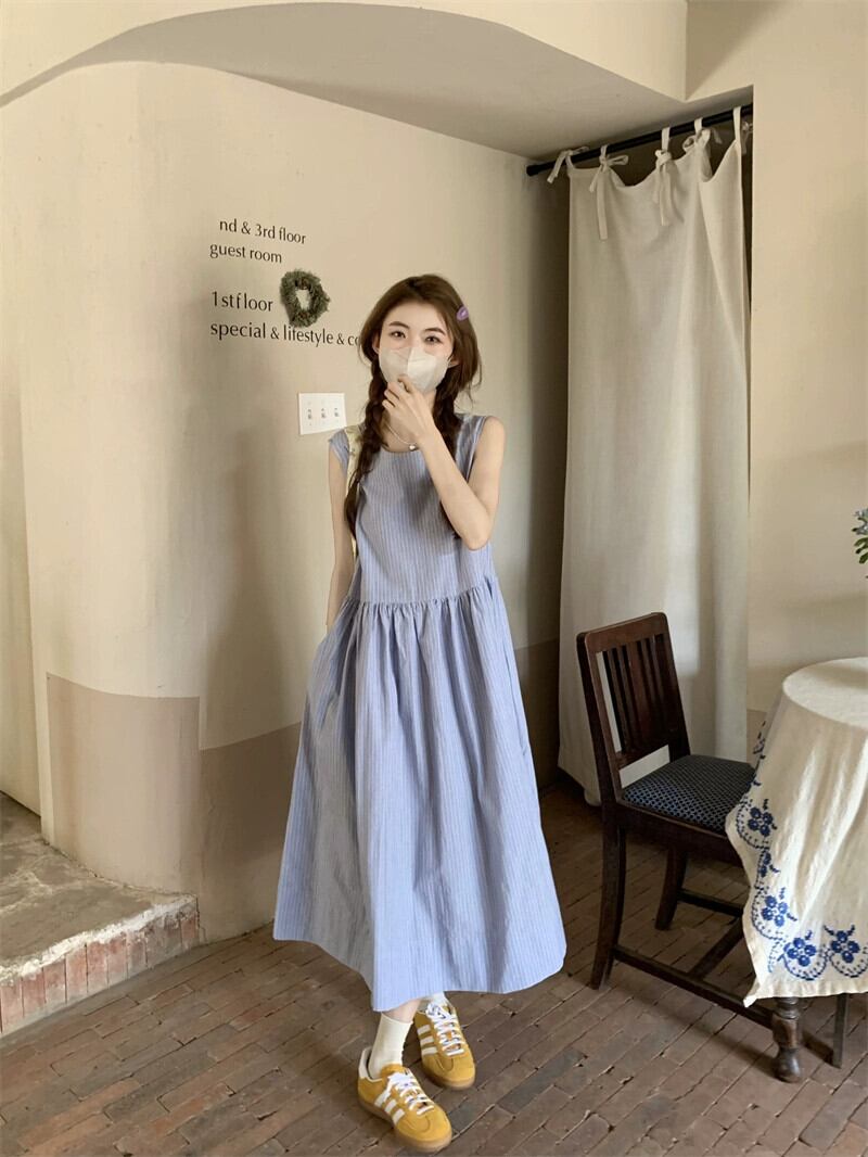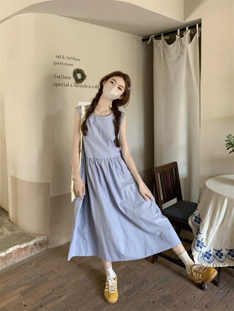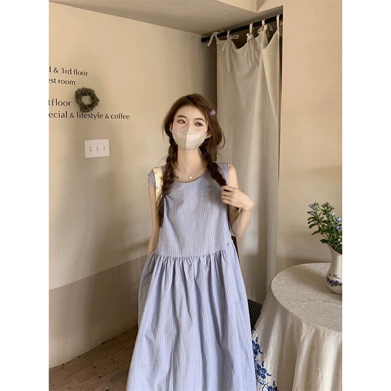 ストライプベストドレス女性の夏の 2023 新しい小さな新鮮なウエスト痩身ミッドレングス気質ノースリーブスカート サマー 夏物 missk31710780999