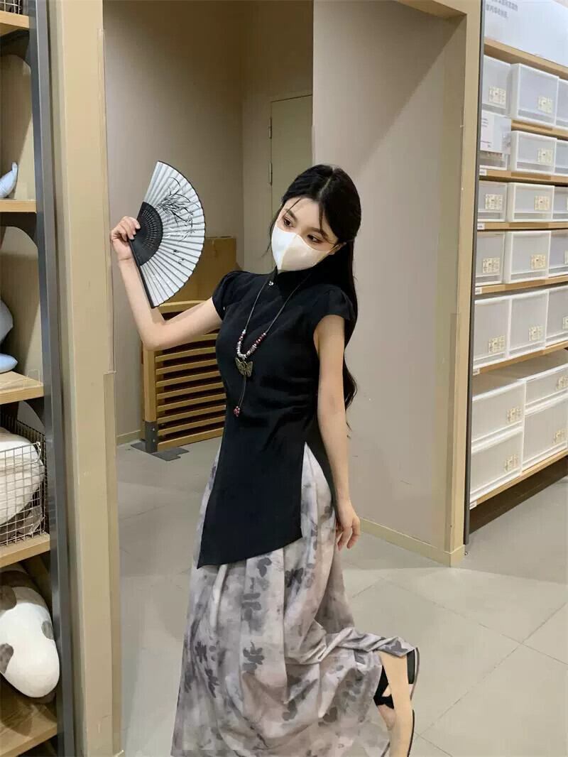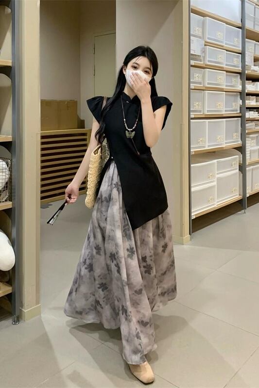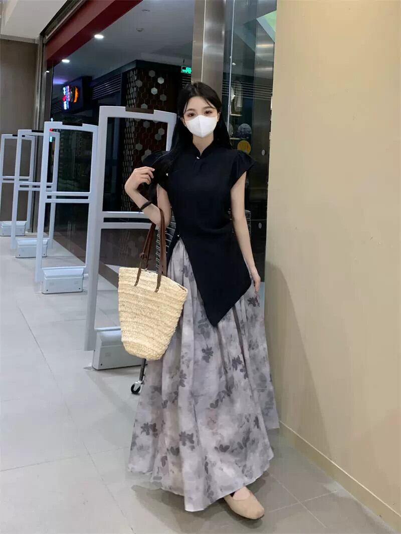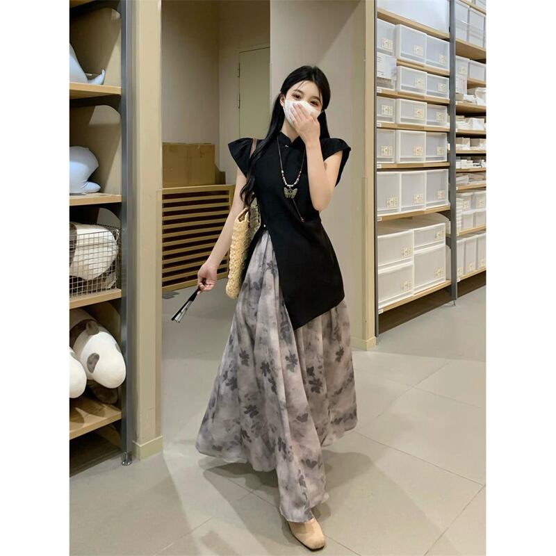 中国風の不規則なフライングスリーブシャツミッドレングスブルーミングスカート女性の夏の2023新しいファッションスーツ サマー 夏物 missk73357600131