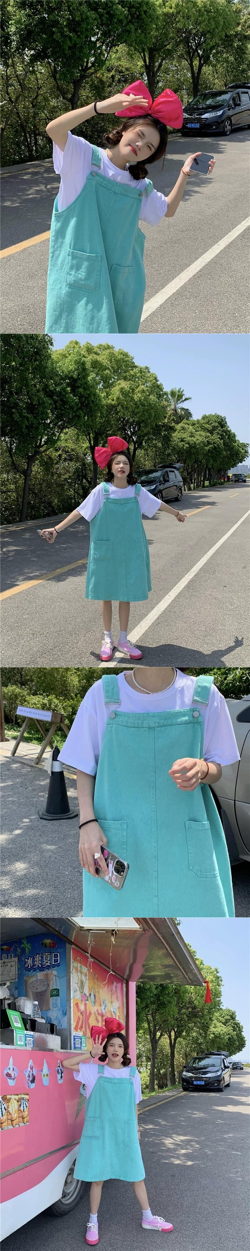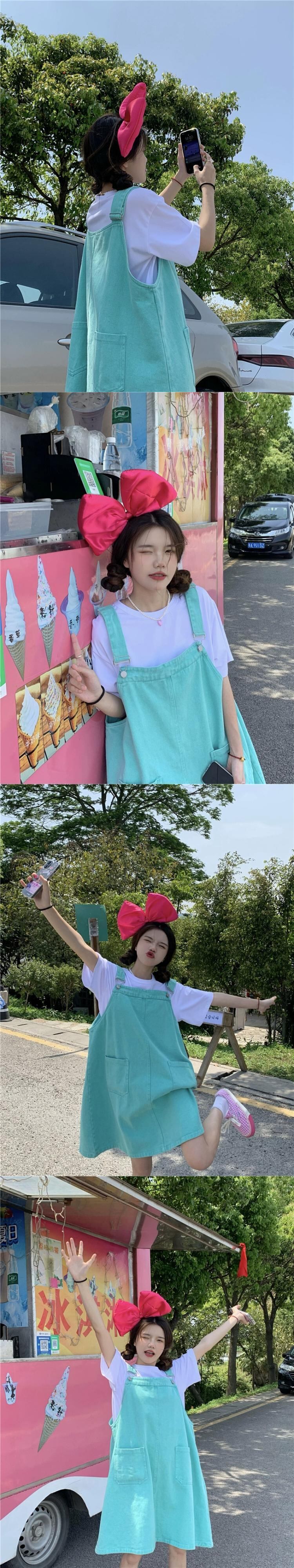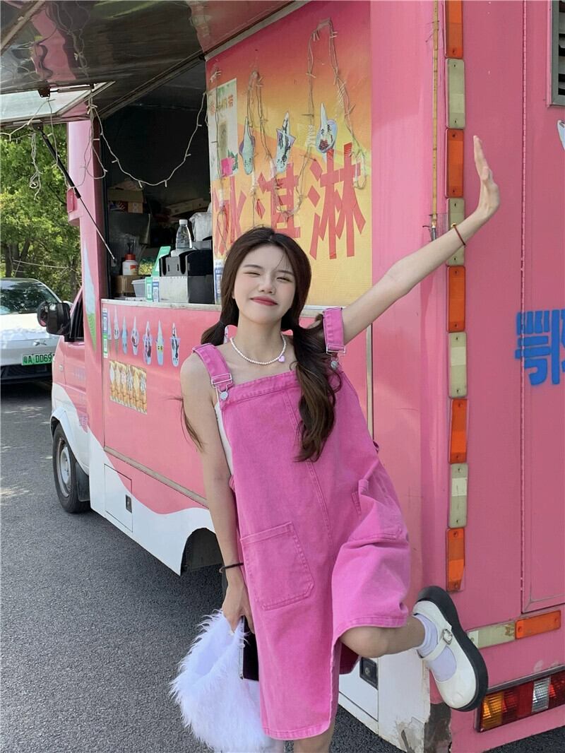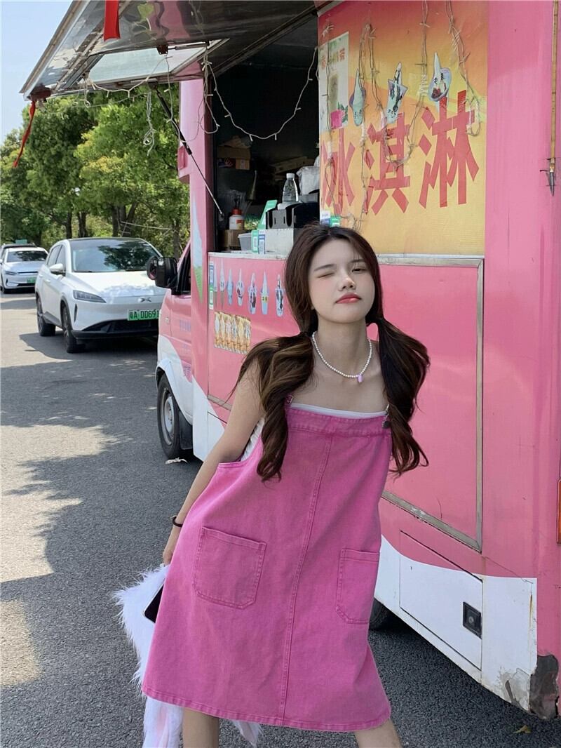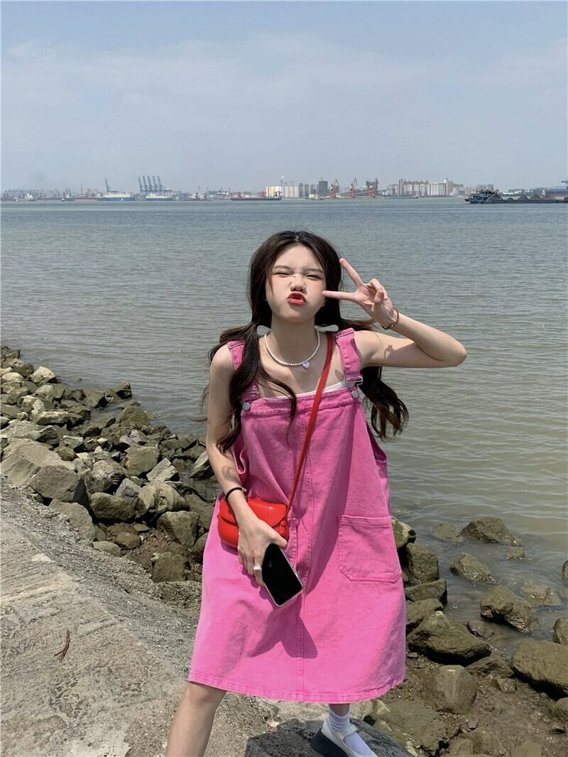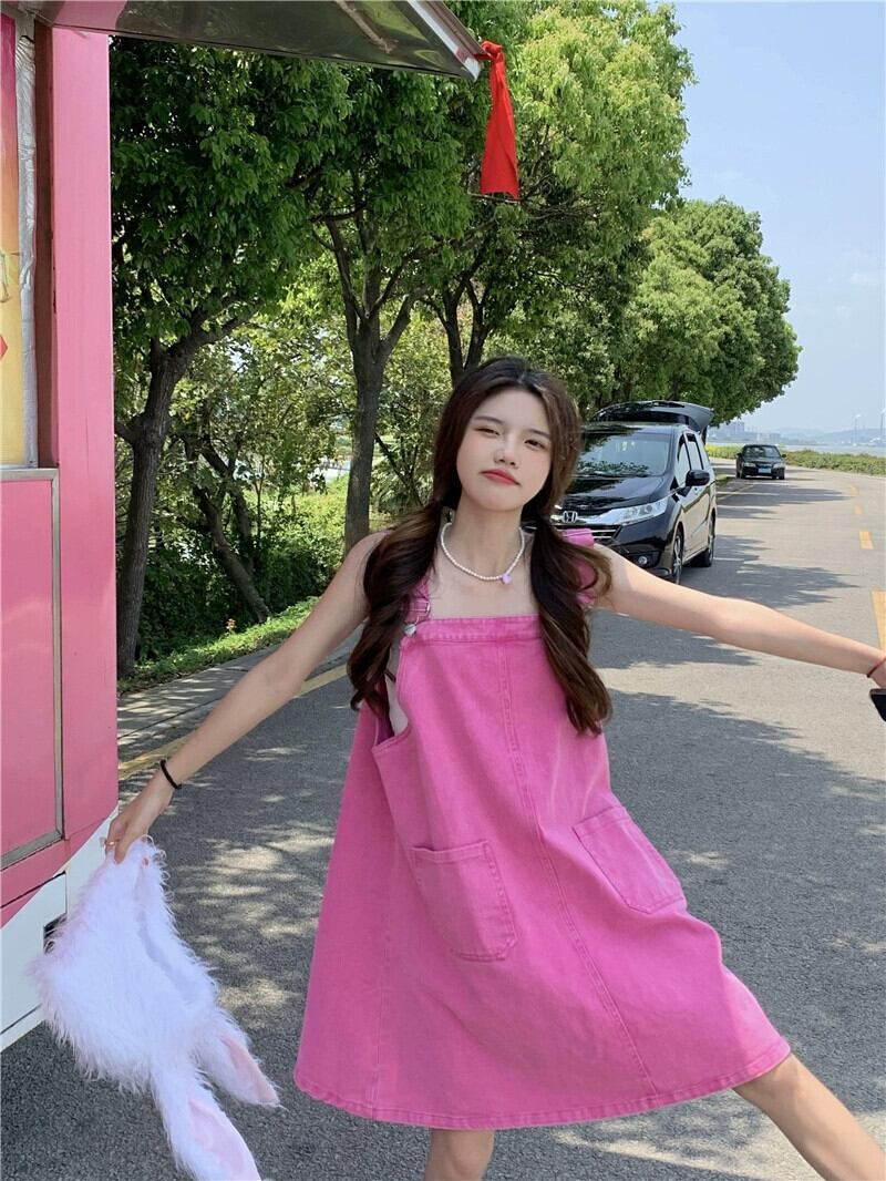 ドーパミンウェアサスペンダードレス夏の新しい甘くて年齢を軽減するキャンディーカラーのヘビーデニムショートスカート レッド 大人ガーリー スウィート キュート カジュアル サマー 夏物 missk52625650252
