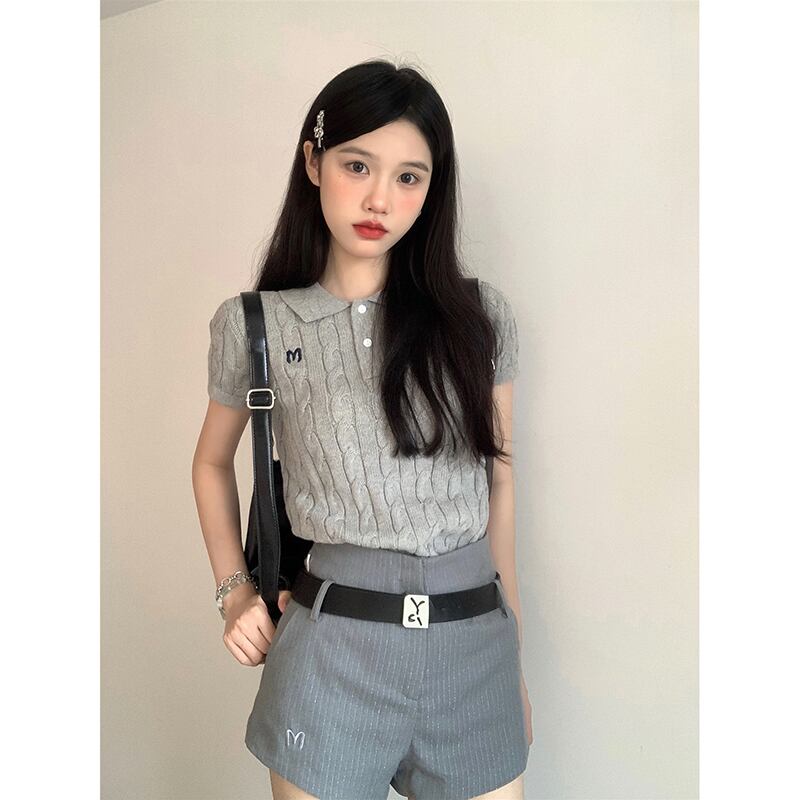 ポロ襟刺繍半袖セーター夏の新しい痩身薄いツイストツイストファッションデザイントップ女性シック レッド サマー 夏物 missk11216712276