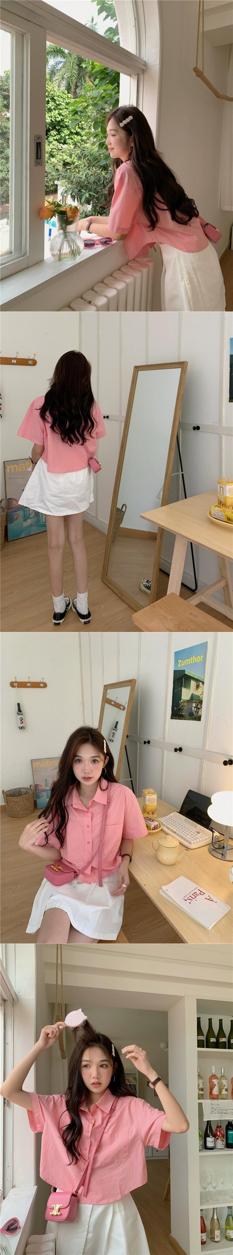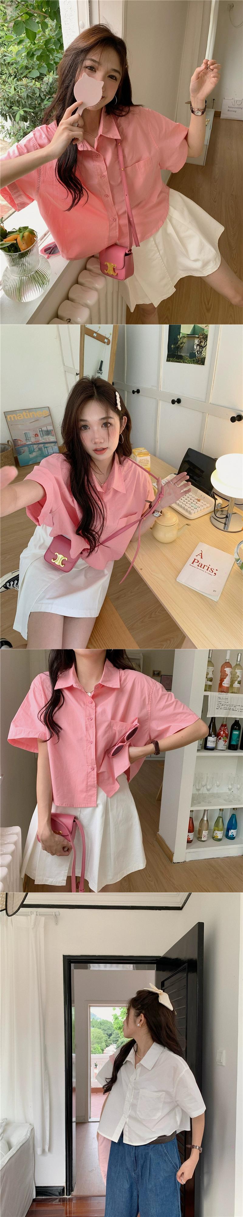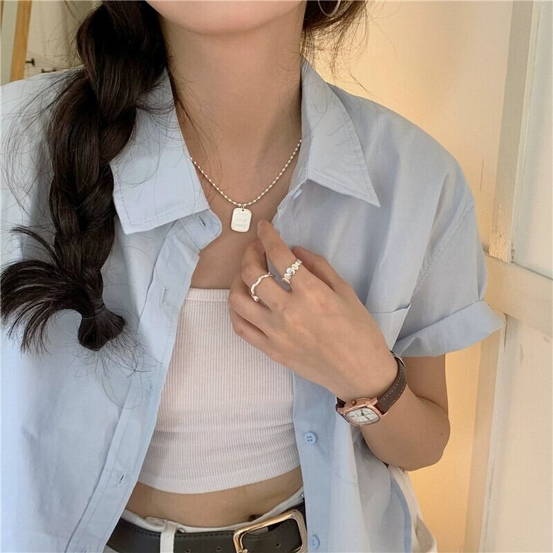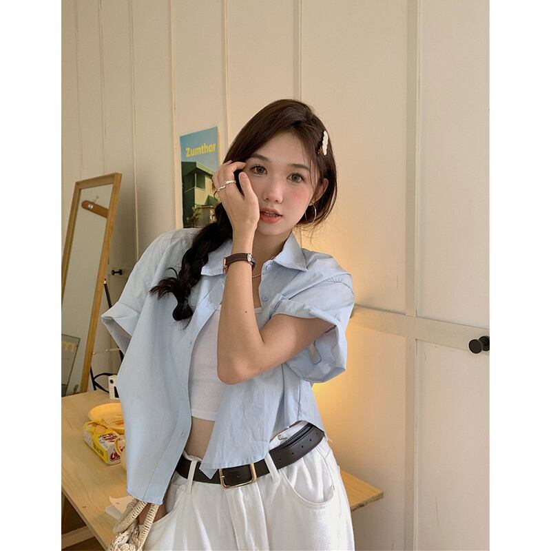 文学の小さな新鮮なブルー半袖シャツ女性の夏の 2023 新しいルーズショートデザインポロカラートップ サマー 夏物 missk58095982081