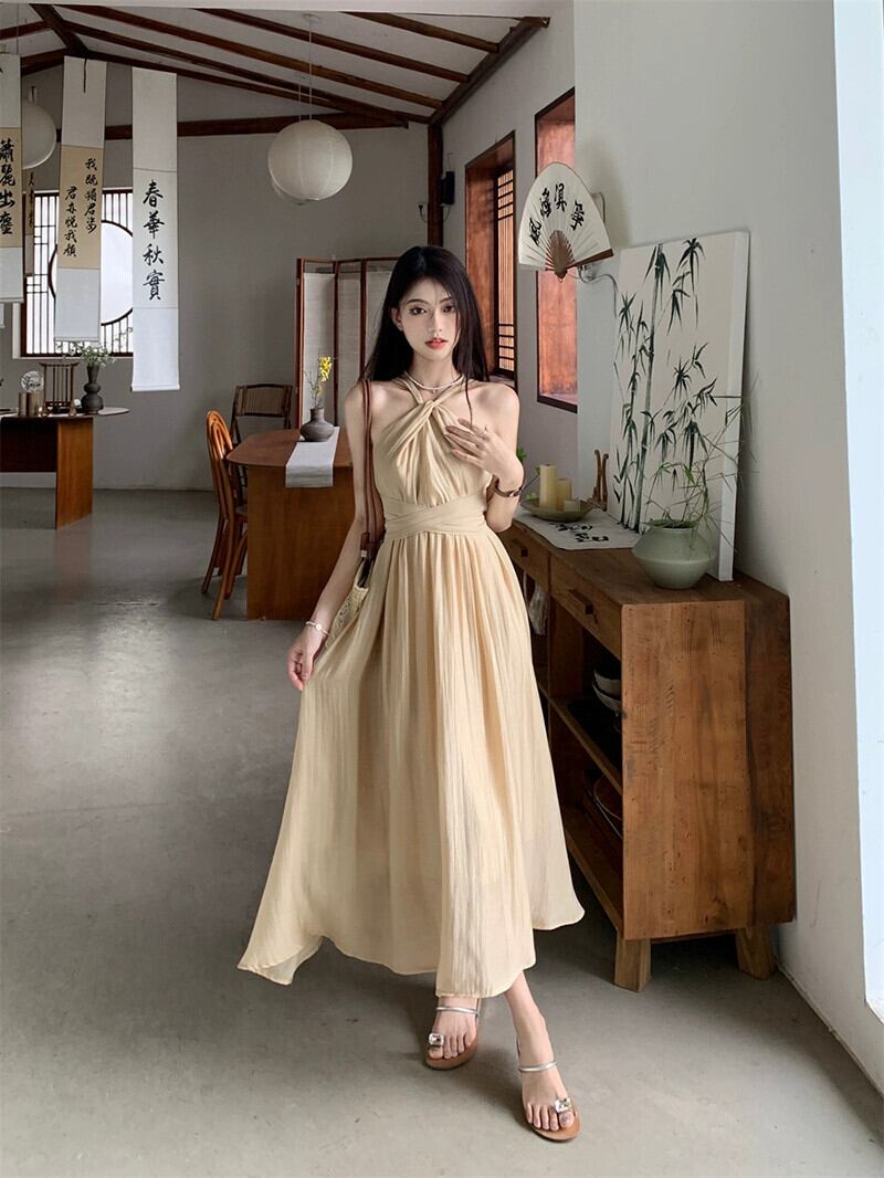 フランスの吊りネックストラップドレスの女性の夏の 2023 新しいハイエンド感覚ウエスト痩身ミッドレングス気質スカート サマー 夏物 missk58926706637