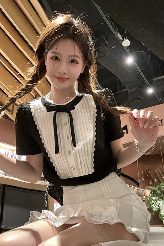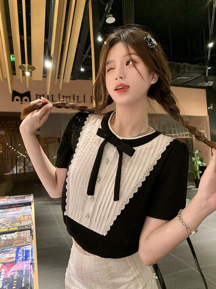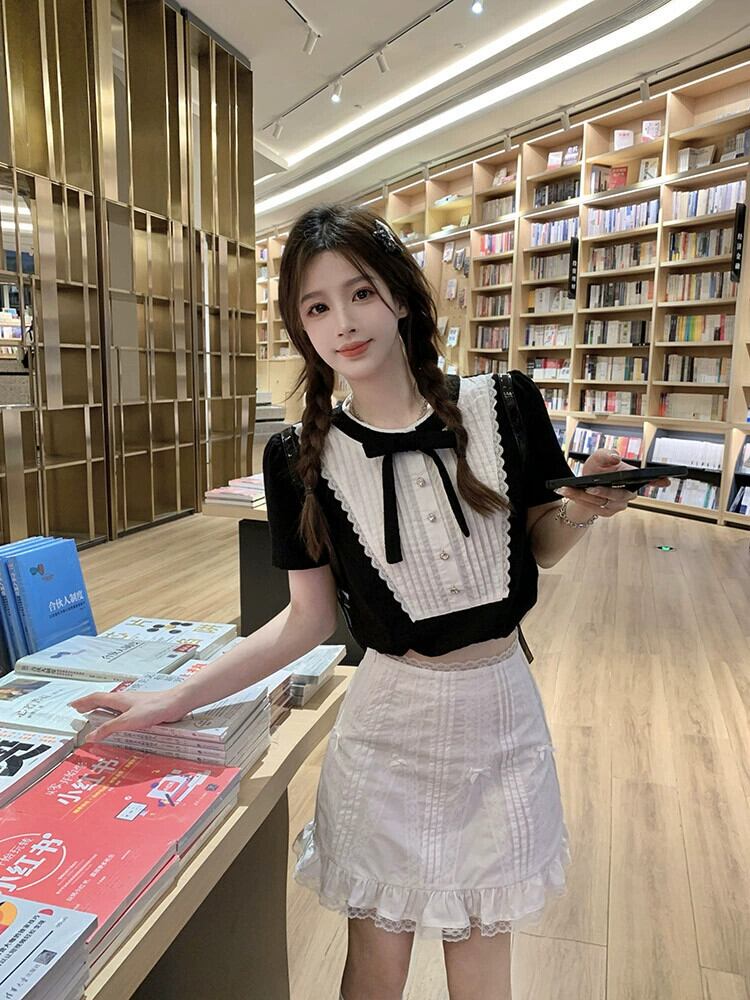 ちょう結び重工業レースステッチ半袖シャツハイウエストバッグヒップスカート女性の夏の 2023 新しいファッションスーツ ハイウェスト サマー 夏物 missk36200941577