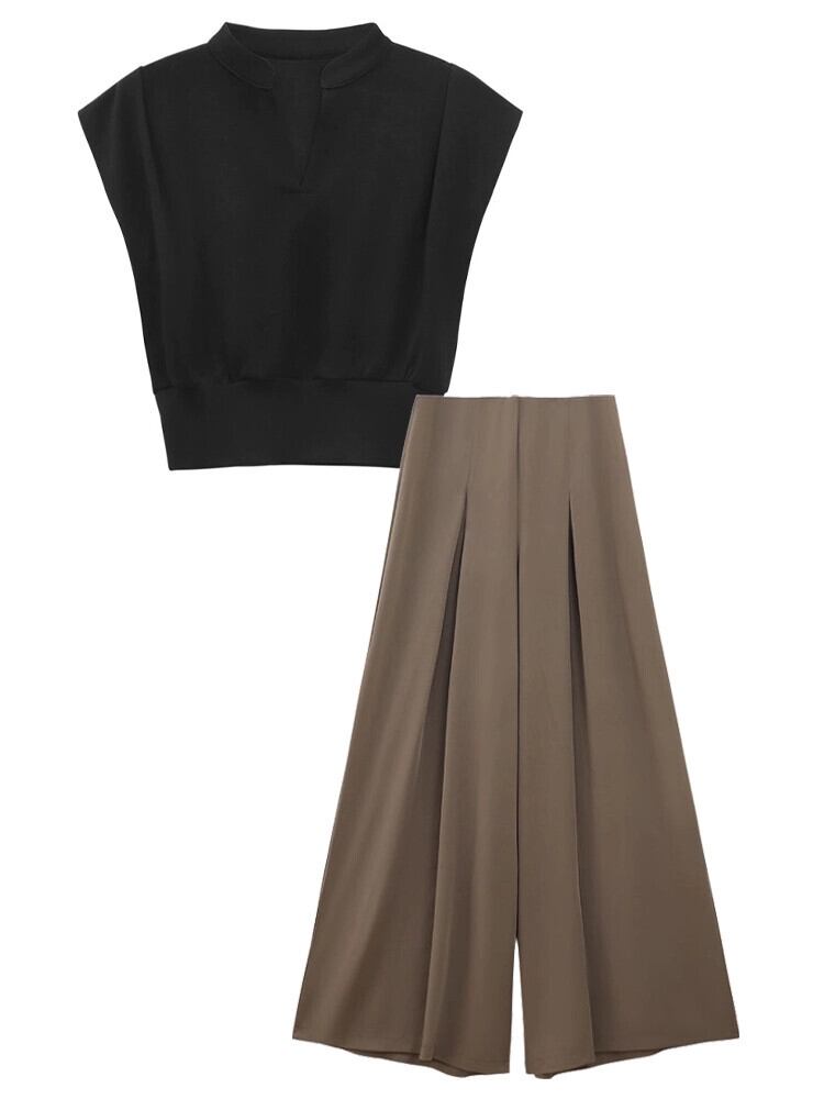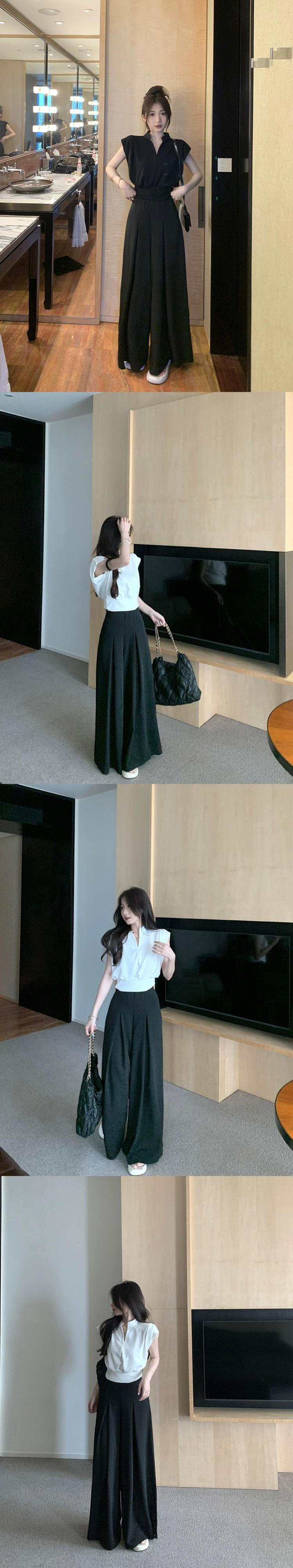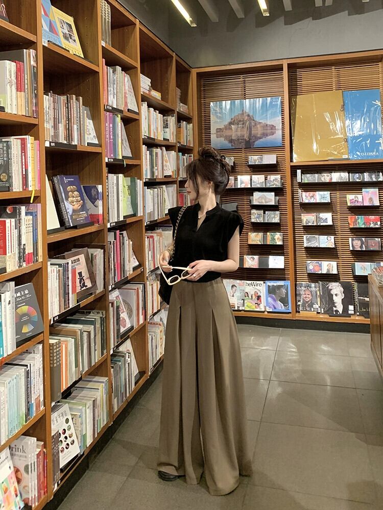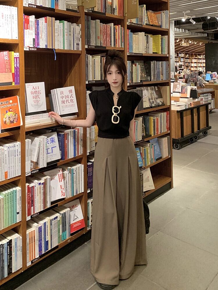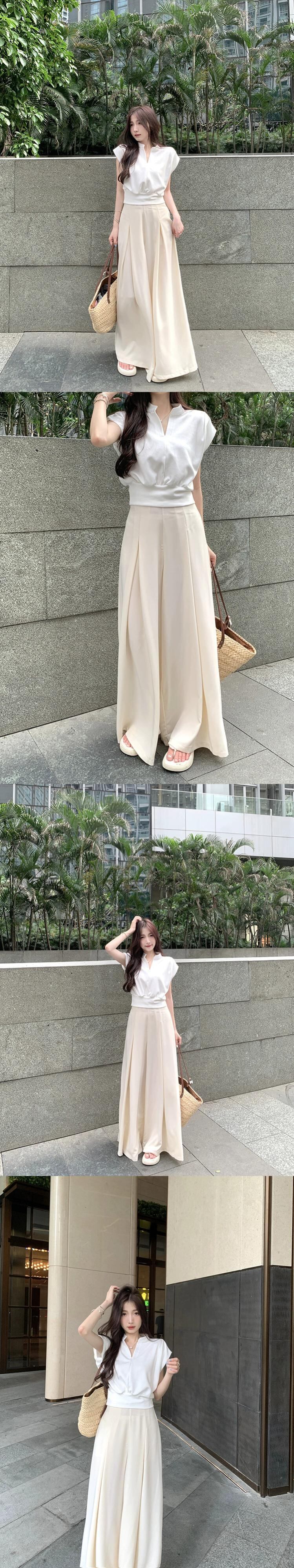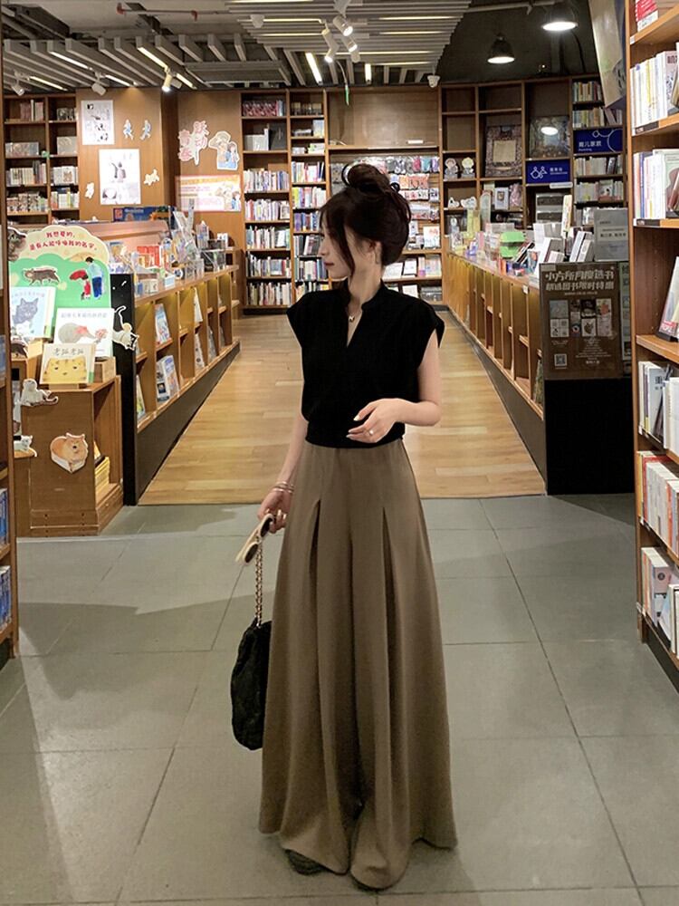 気質デザインセンスVネックTシャツトップスーツ半袖夏ワイドレッグスーツパンツ高級ファッション2点セット女性潮 サマー 夏物 missk87420751789