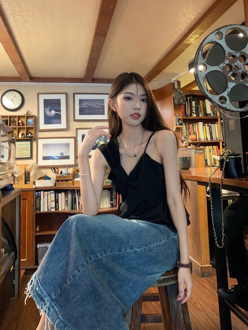 V ネックノースリーブサスペンダーシャツ女性の夏の 2023 新しい香港スタイルのデザインセンスウエストと薄いアウターウェアシックな小さなシャツ サマー 夏物 Vネック missk79930027227