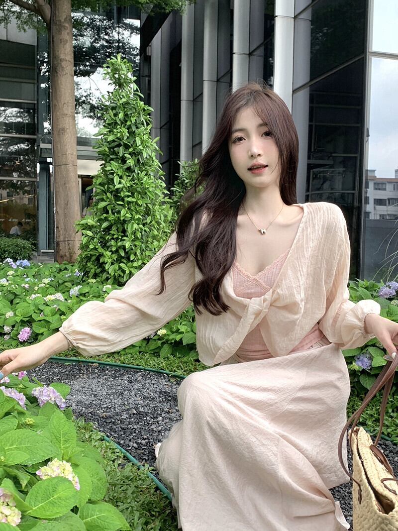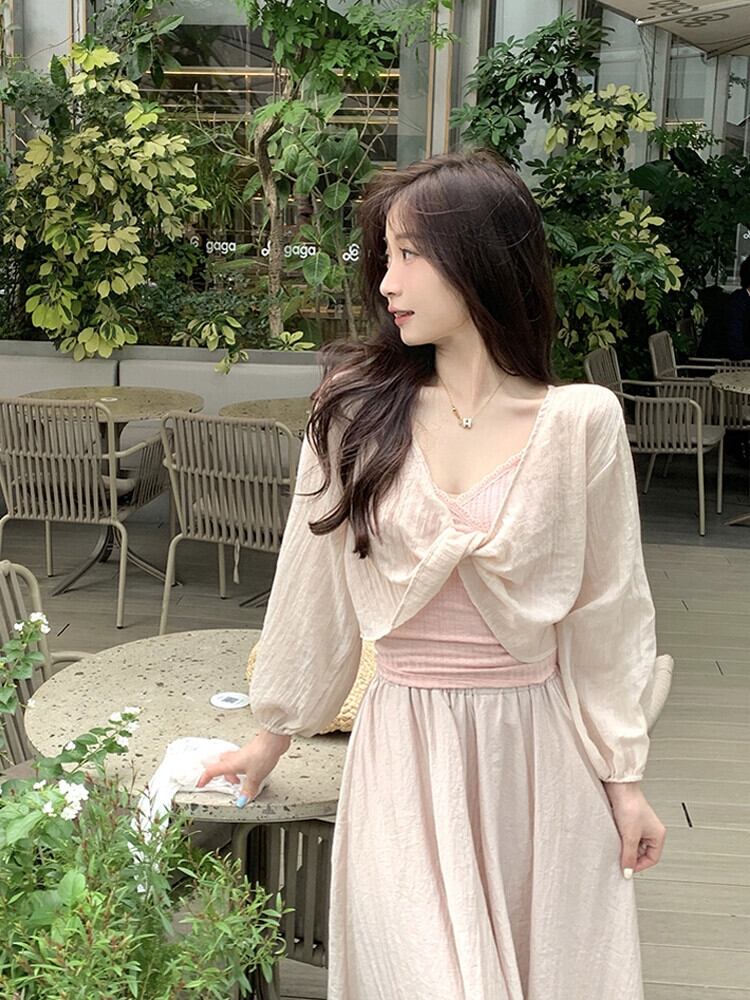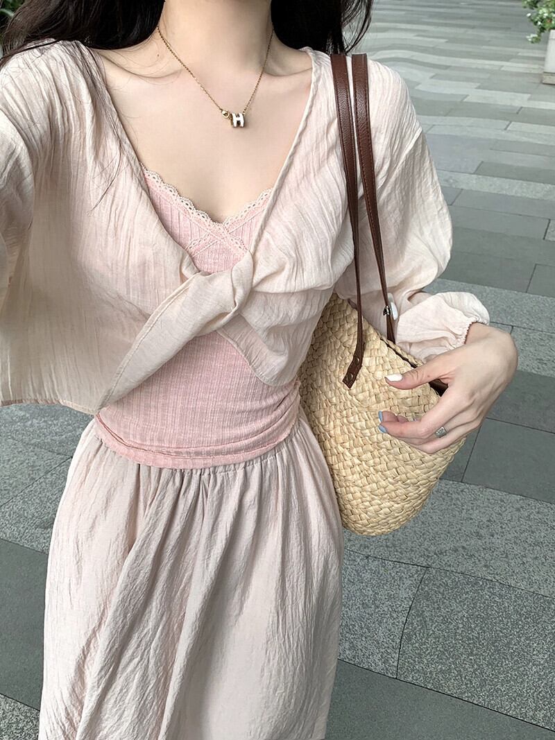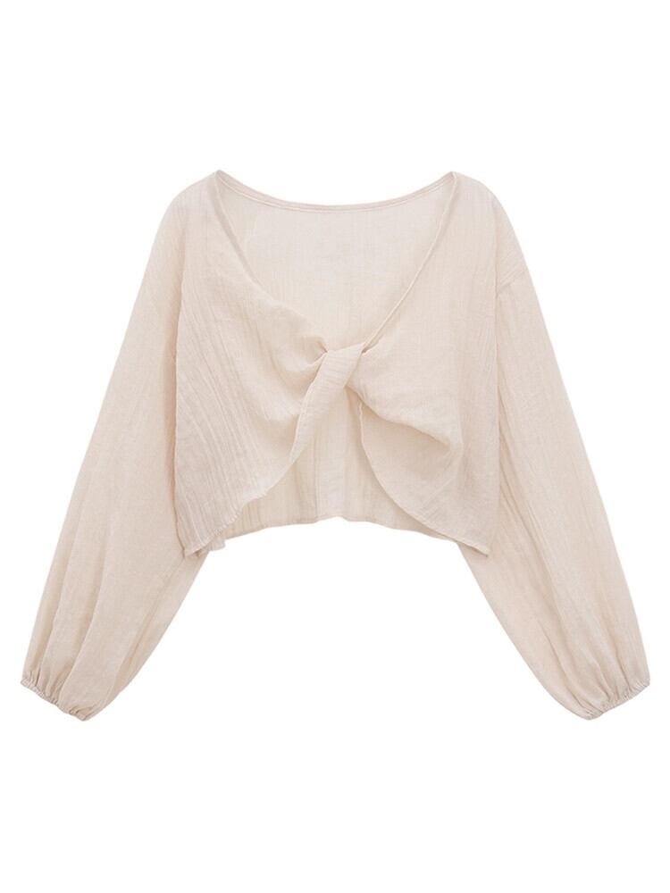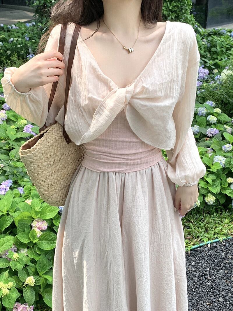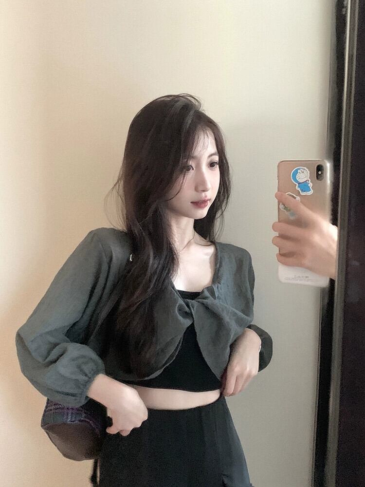 優しい風シックなショート日焼け止めブラウス夏の新しい甘い V ネック長袖薄手のシャツトップ婦人服 ロング 大人ガーリー スウィート キュート カジュアル サマー 夏物 Vネック missk24427212207