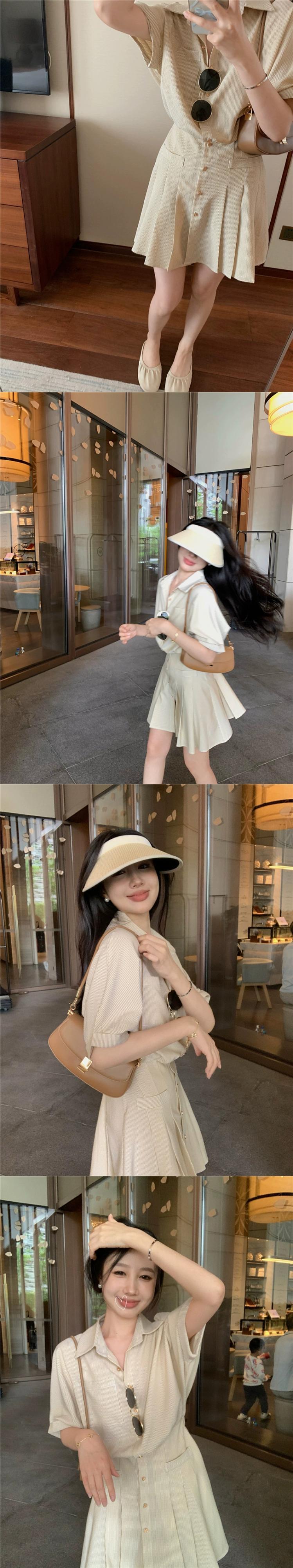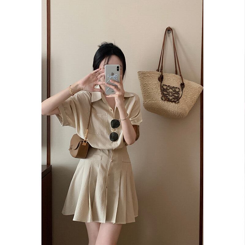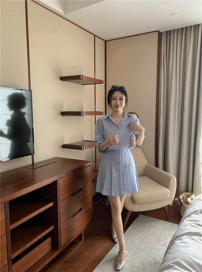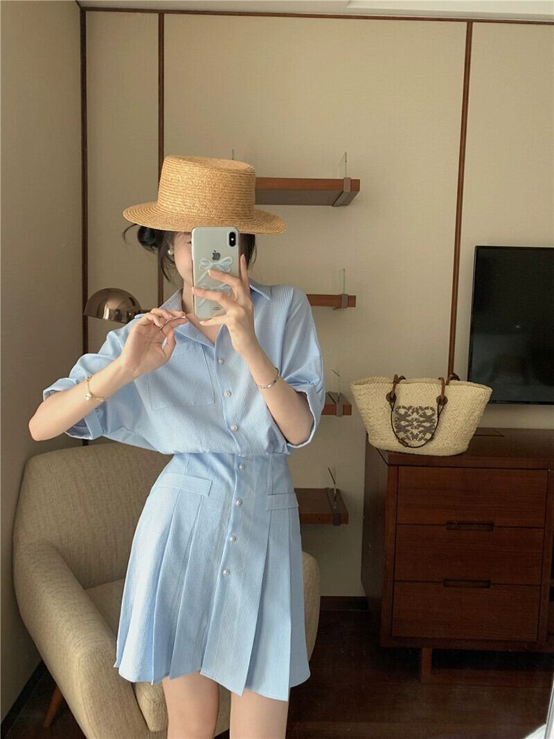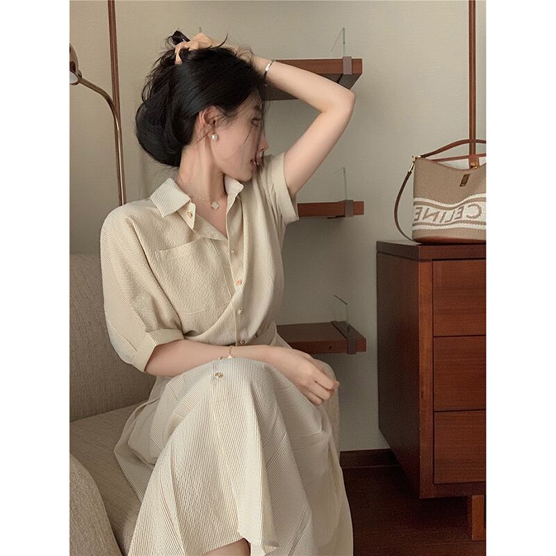ポロカラーシャツスカートレディース 2023 夏の新しいスタイルのウエスト痩身はしょっぱくて甘いプリーツ半袖ドレスです 大人ガーリー スウィート キュート カジュアル サマー 夏物 missk40023991707