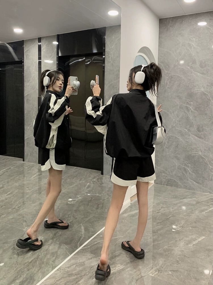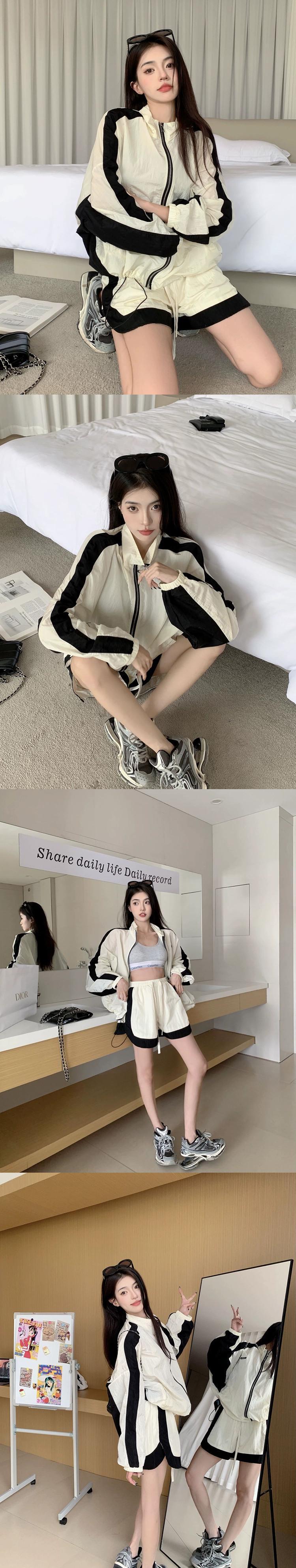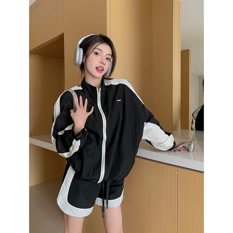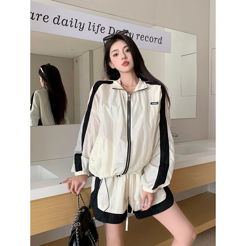スポーツスタイル長袖日焼け止めジャケットジャケットジャケットワイドレッグショーツ夏の新しいファッションツーピースセット女性 ロング サマー 夏物 ブルマー missk45391679987