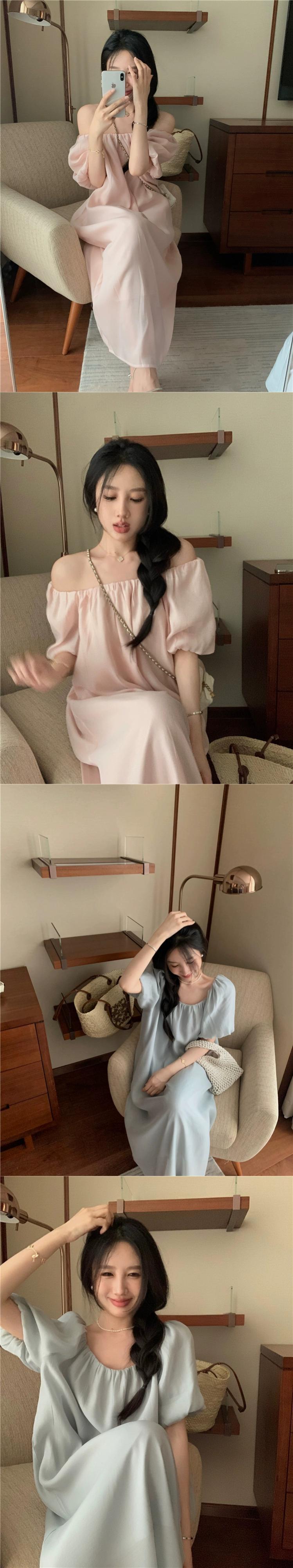 ワンショルダーツーウェアパフスリーブストレートドレスレディース2023年夏新スタイルスリム気質半袖ロングスカート サマー 夏物 missk98760814913