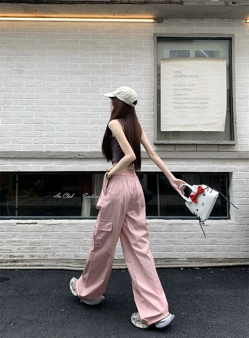 ツーリングワイドレッグパンツレディース夏バージョン2023新しいハイウエスト痩身スタイルカジュアルパンツ足元デザインセンス サマー 夏物 missk95049725524