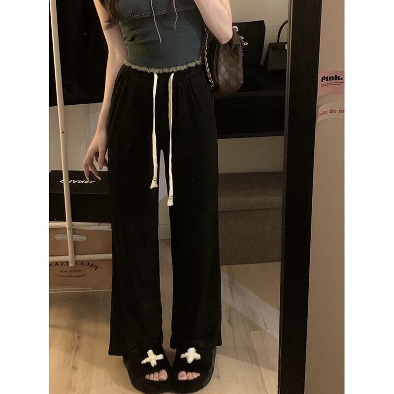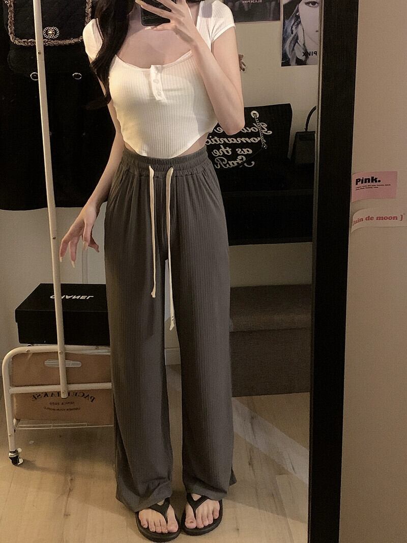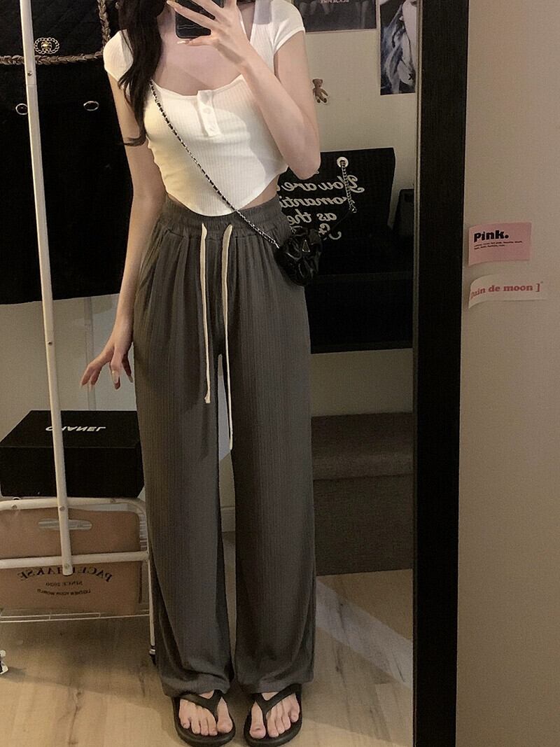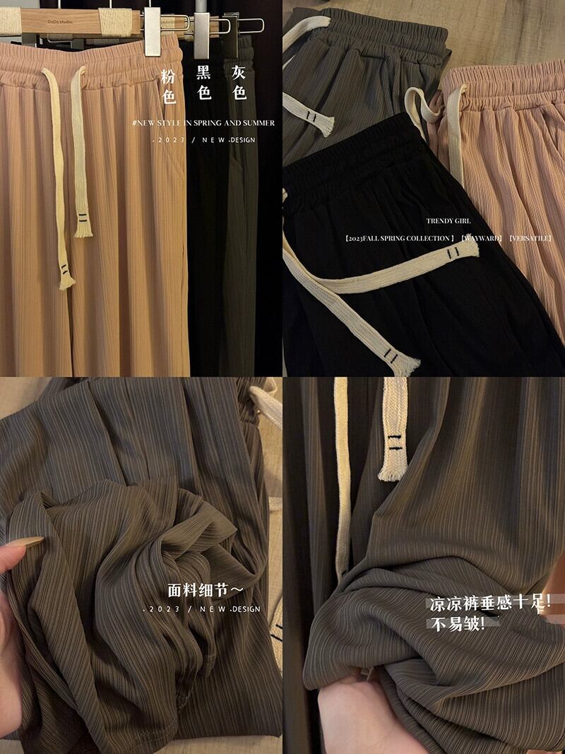 薄氷シルククールパンツ夏バージョン 2023 新しい巾着ドレープハイウエストスリムワイドレッグカジュアルパンツ女性 ハイウェスト サマー 夏物 ワイドパンツ missk17244984912