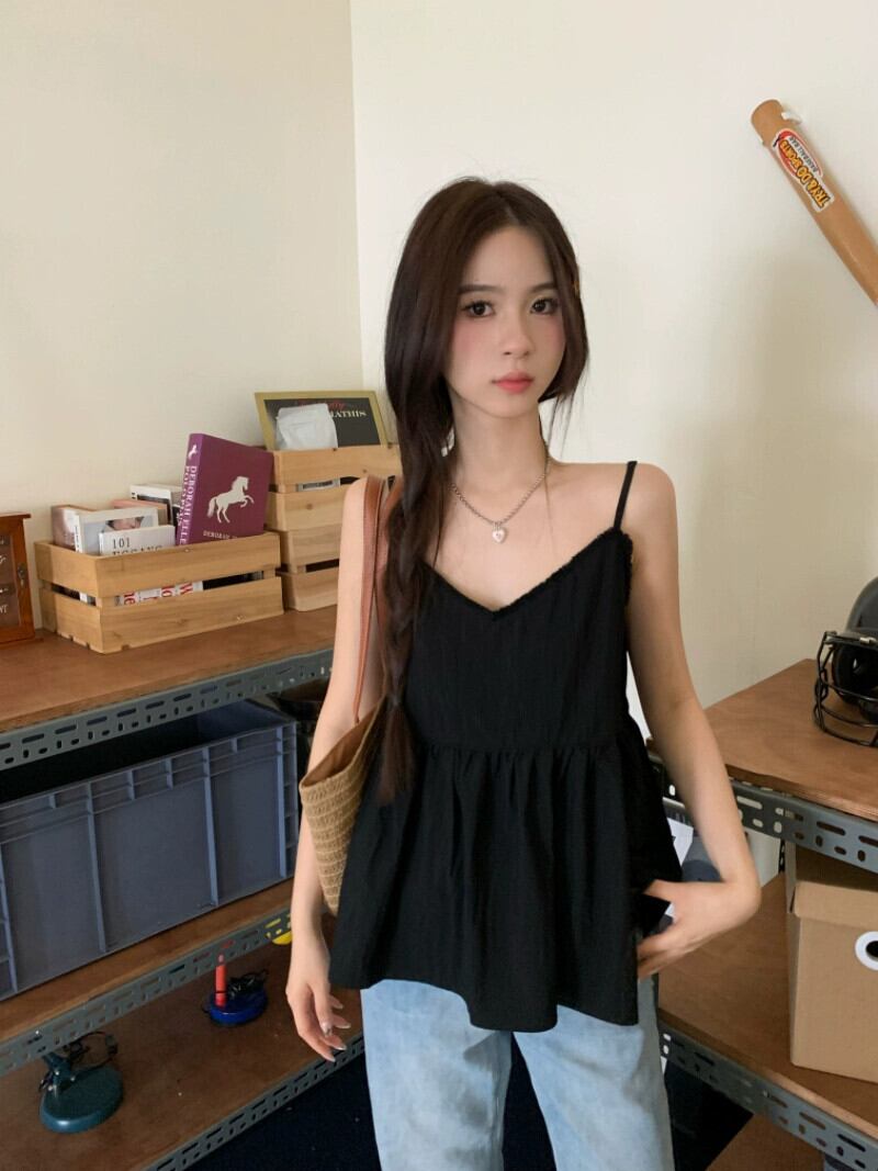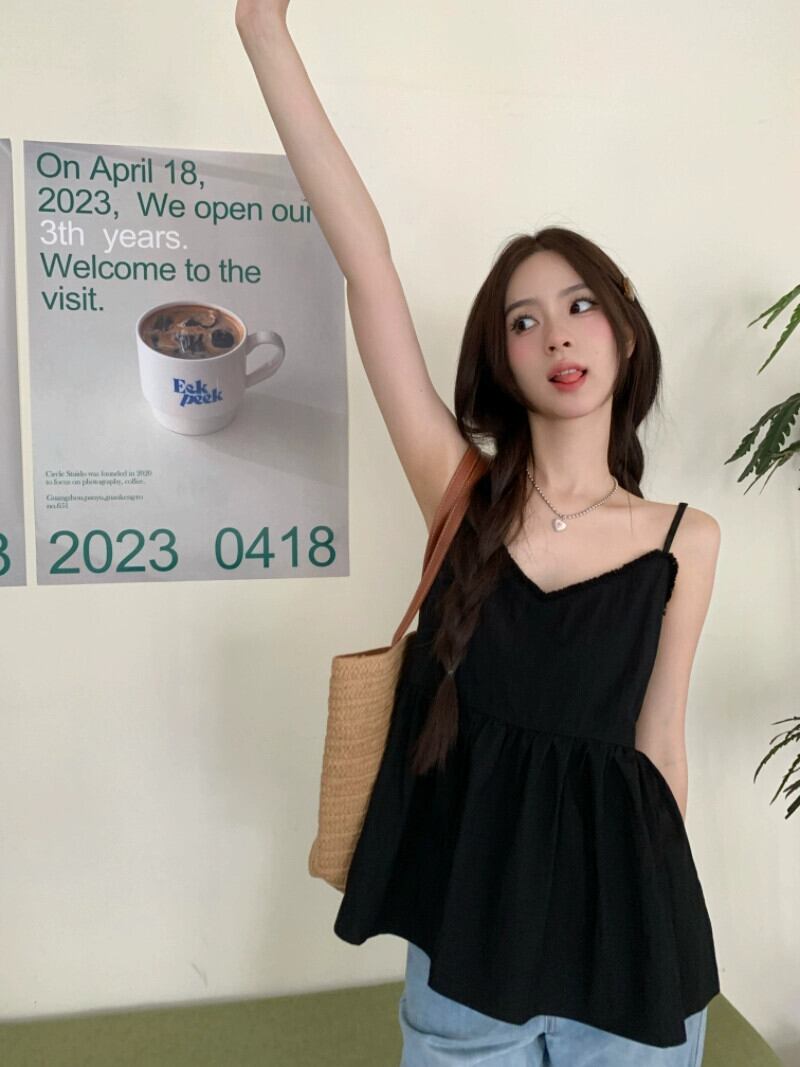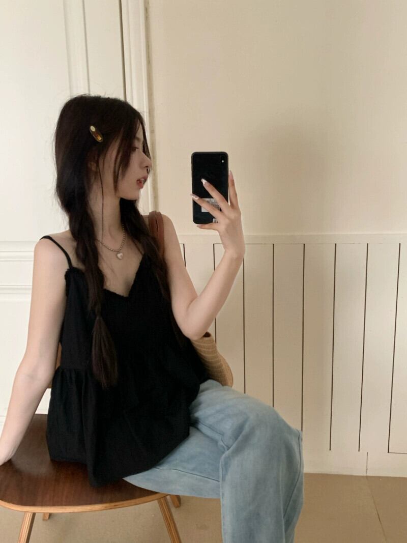 2023 夏の新しいフランスのファッションオールマッチベストキャミソール女性の休日スタイルのデザインの生のエッジシックなトップ潮流 サマー 夏物 missk44834453349