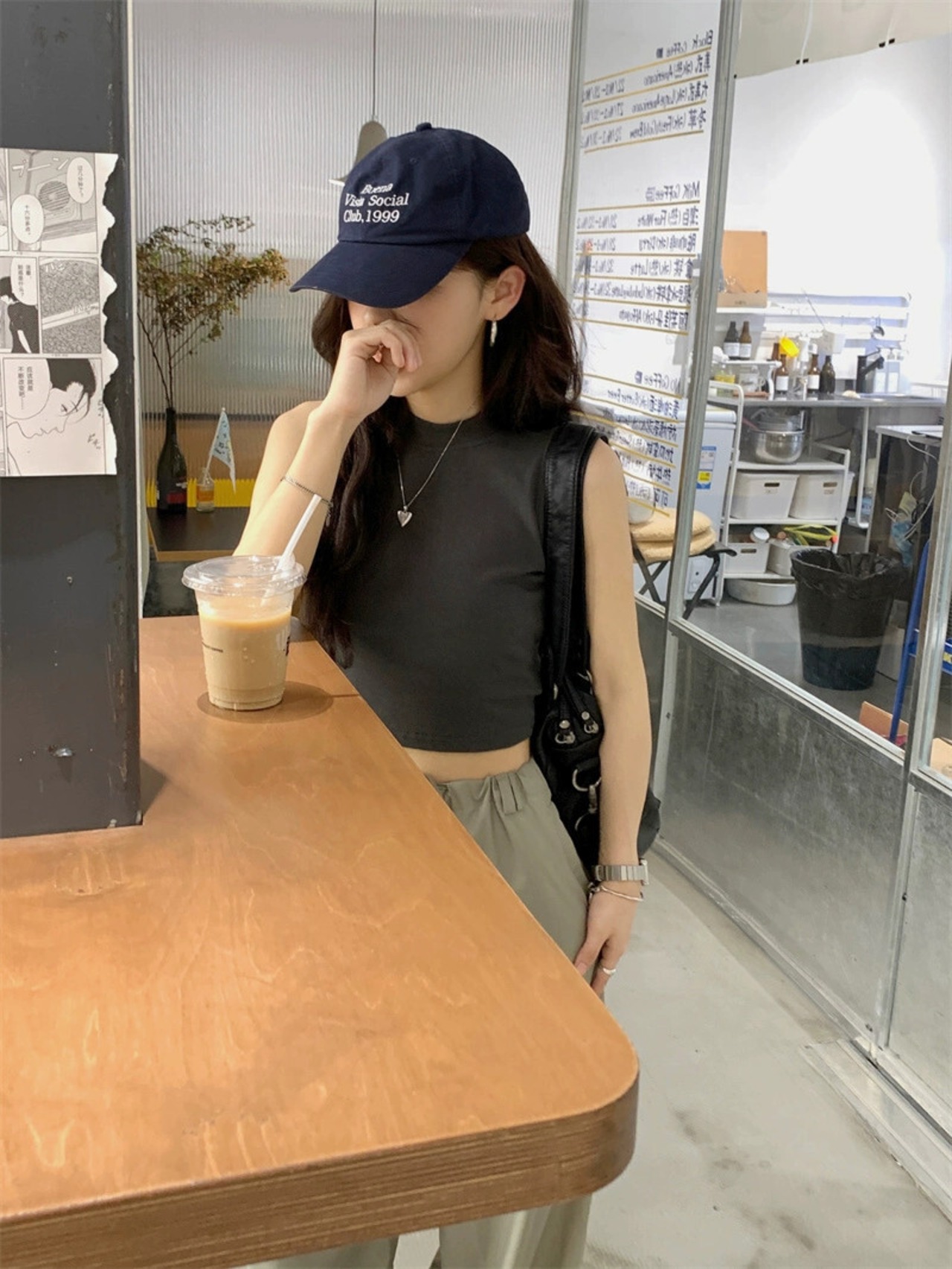 ホット BM スタイルショートノースリーブ小さなサスペンダー夏の新しいファッション痩身薄い無地ラウンドネックベストトップ女性 半袖 ハーフスリーブ サマー 夏物 Oネック ソリッドカラー missk4604581830