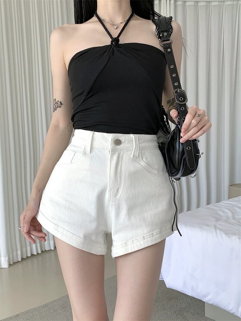ホワイトデニムショートパンツレディース夏バージョン2023新しいスタイルハイウエスト痩身デザインワイドレッグパンツパンツ ハイウェスト サマー 夏物 ショーツ ブルマー missk70158343627