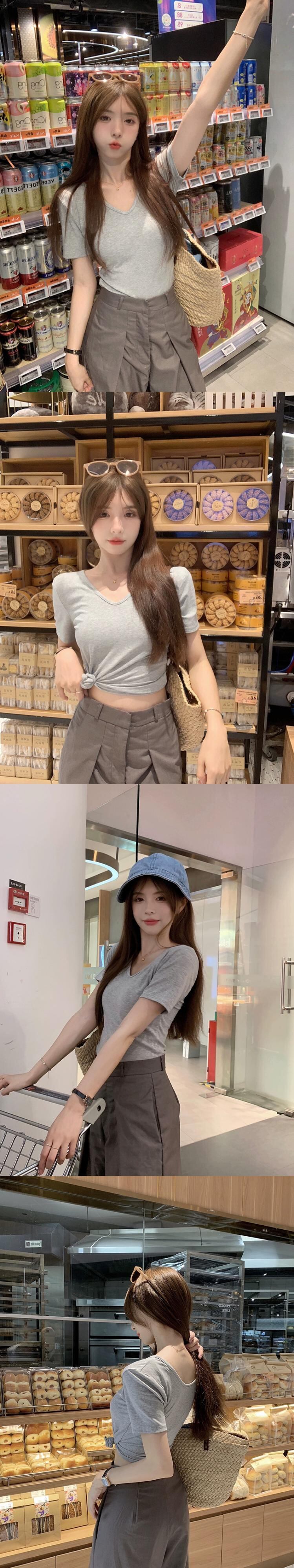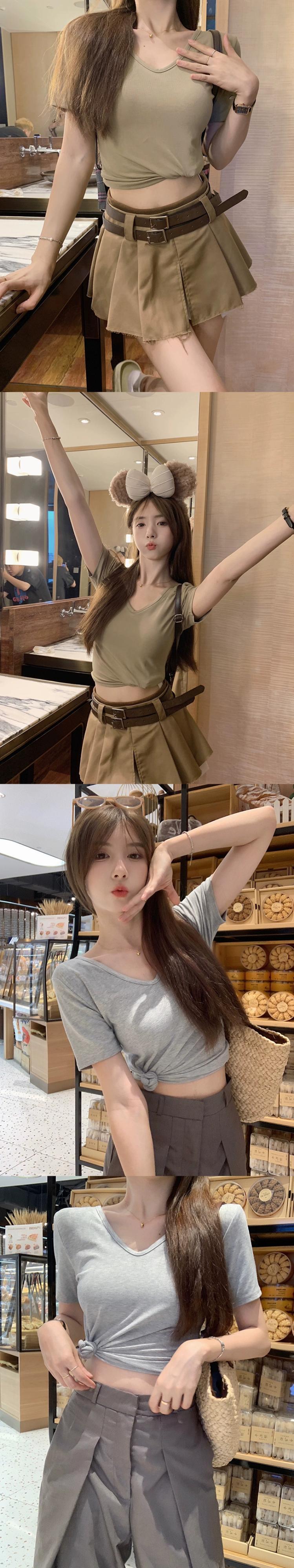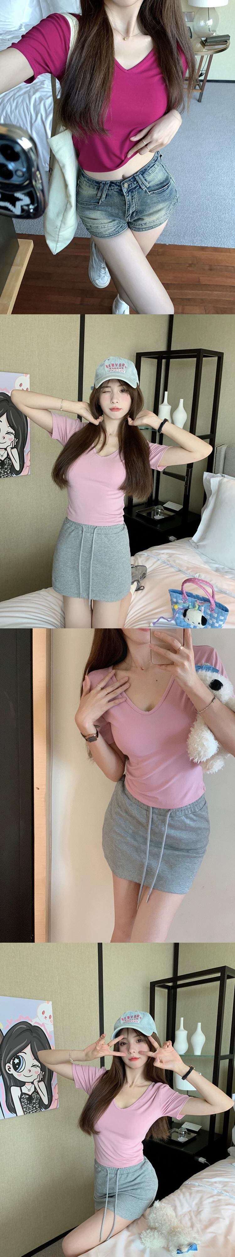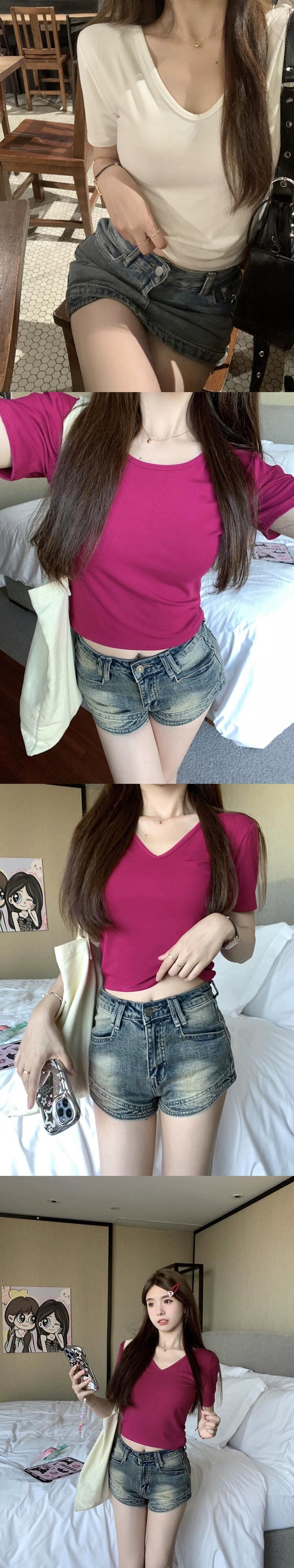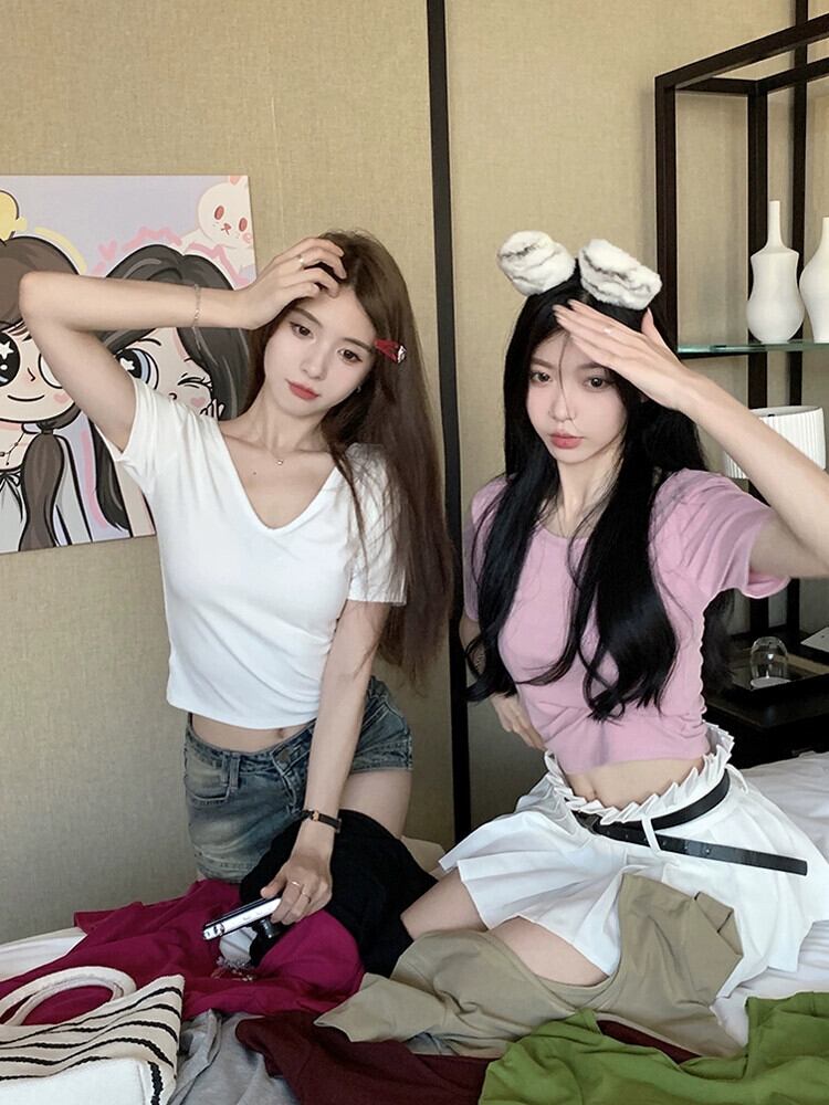 夏ドーパミン着用ショート Tシャツ綿フロントショルダー V ネック半袖白ボトムシャツトップ Tシャツ女性 ホワイト コットン サマー 夏物 Vネック missk47152561903