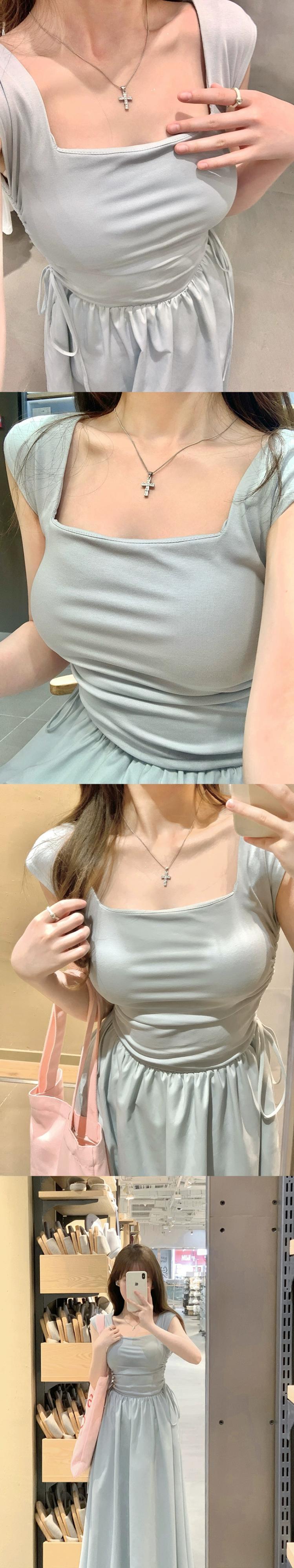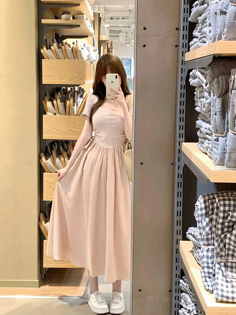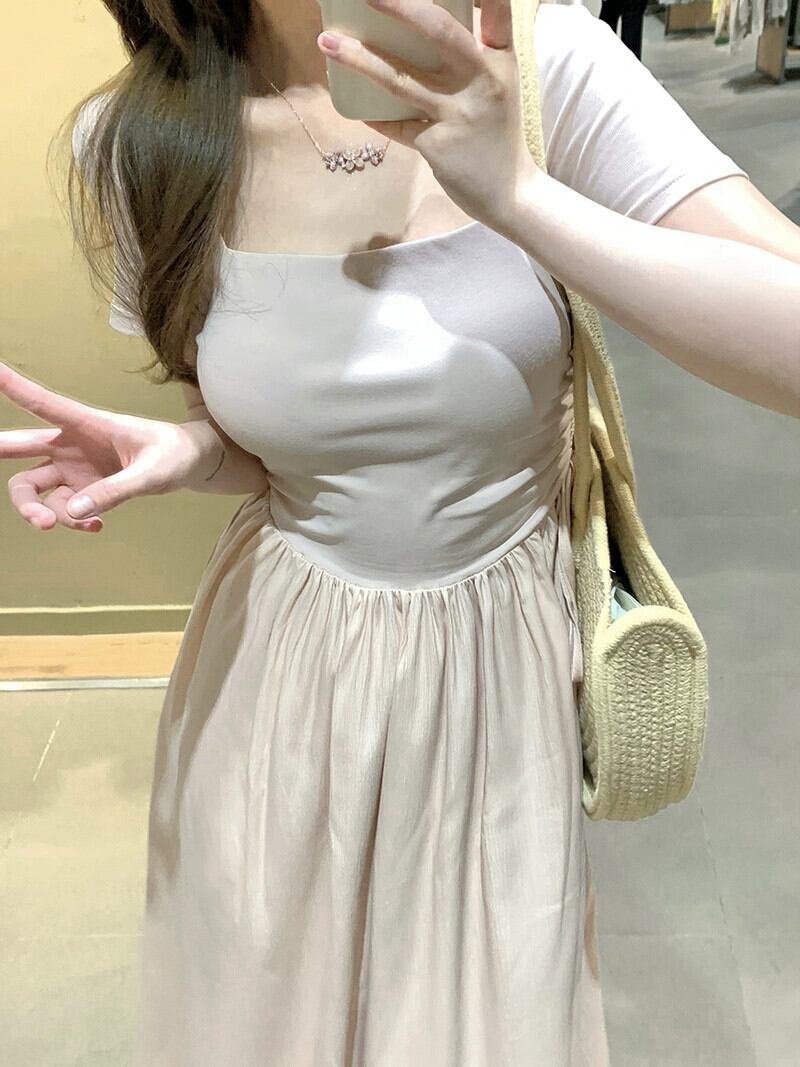 フレンチスタイルの初恋スクエアカラードレスの女性の夏の新しいウエストファッション穏やかな風ミッドレングスの気質小さな白いスカート ホワイト サマー 夏物 スクウェア missk44628674632