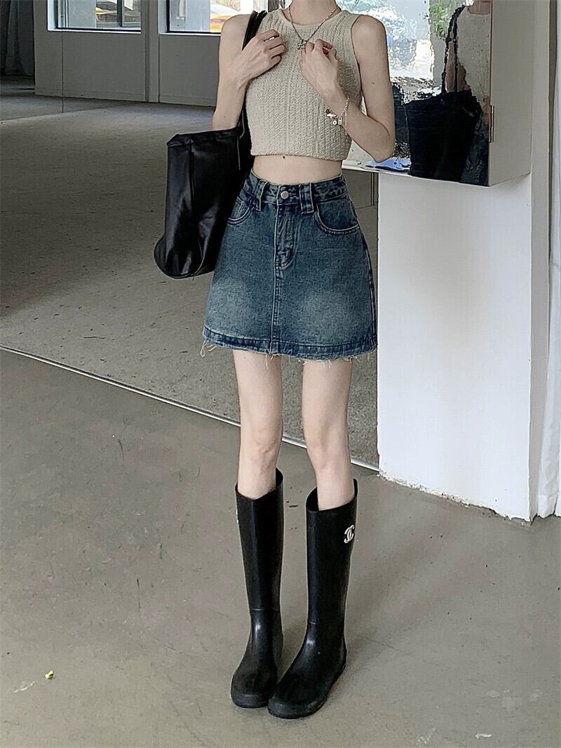 スパイス防光デニムスカートの女性の夏の 2023 新しいレトロハイウエスト痩身デザインセンス A ラインスカート ハイウェスト サマー 夏物 Aライン missk59908998248