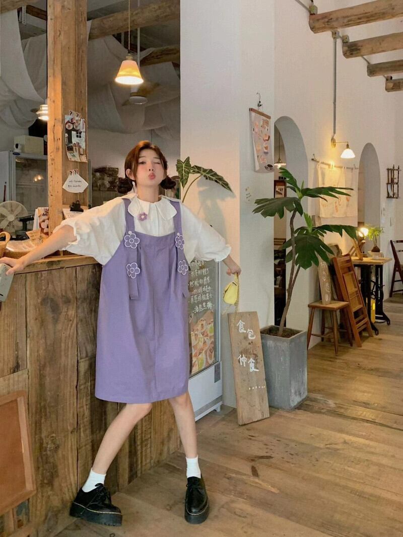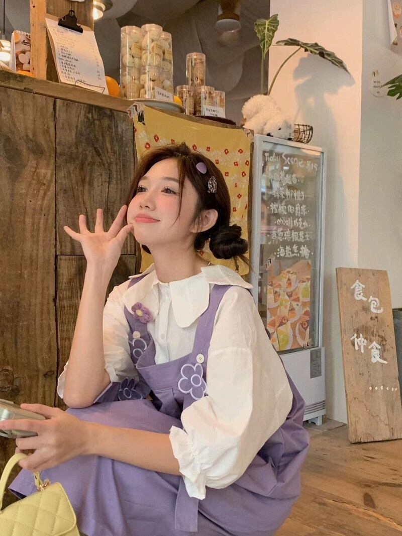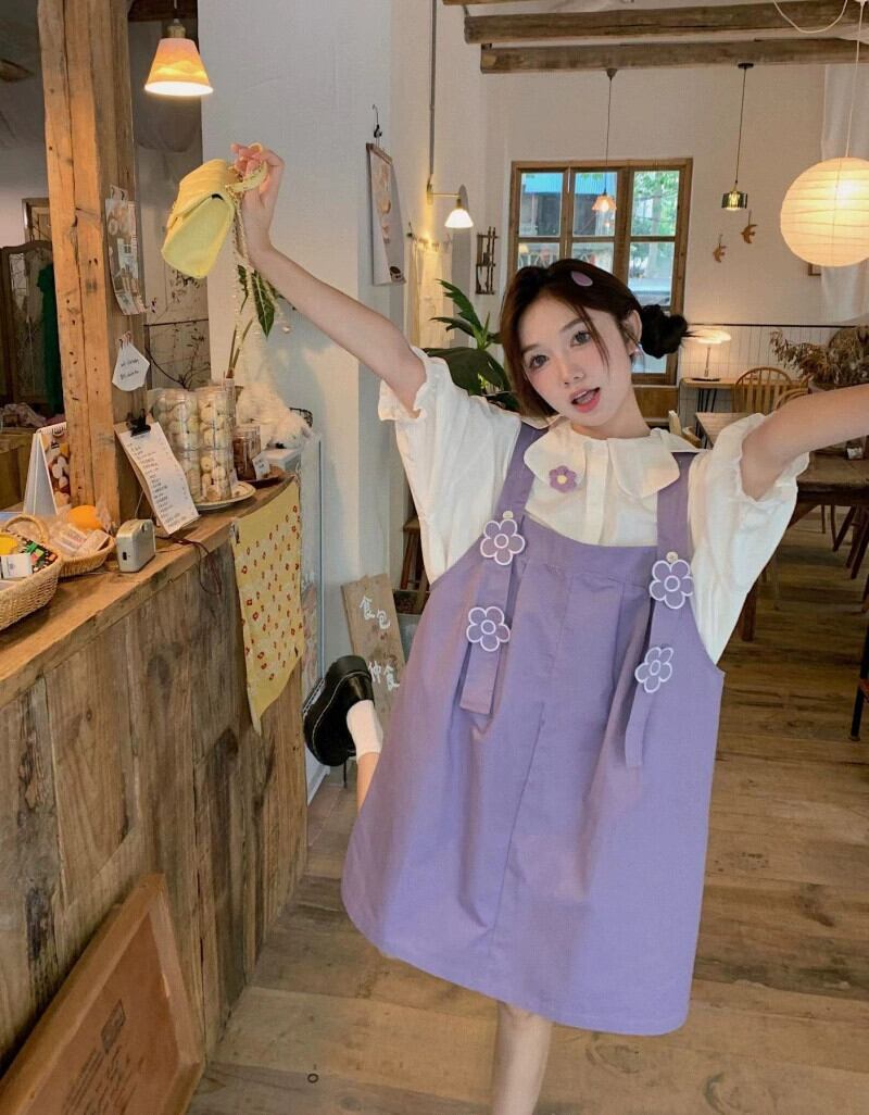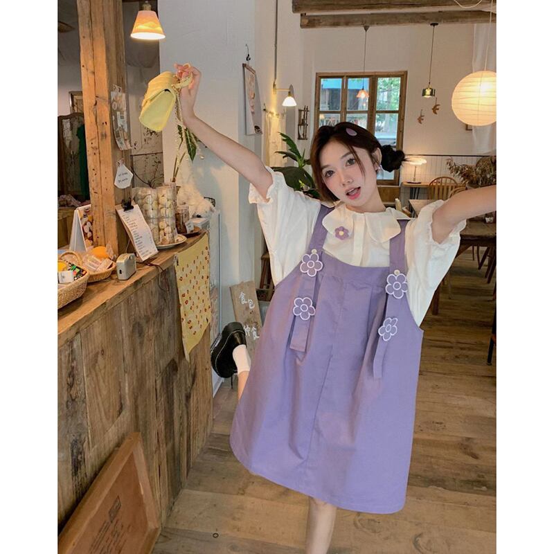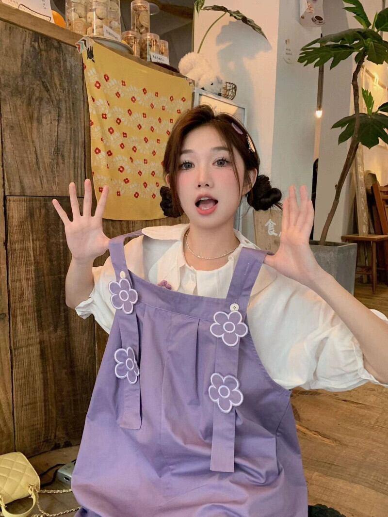 甘いデザインの立体サスペンダードレスパフスリーブシャツ女性の夏のドーパミン着用ファッションスーツ 大人ガーリー スウィート キュート カジュアル サマー 夏物 missk24101371506
