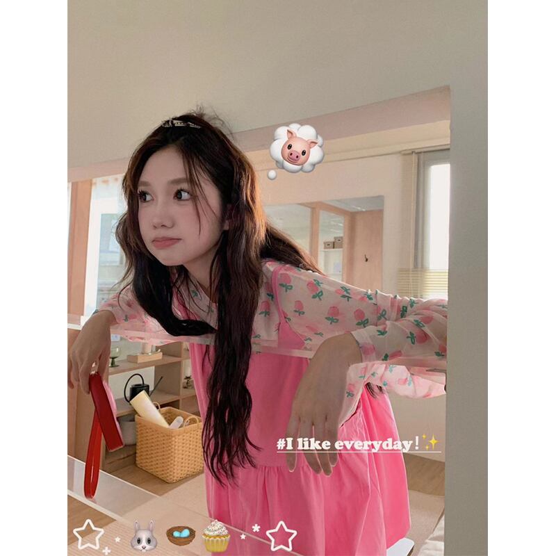 甘いドーパミン着用スーツハイウエストサスペンダードレスファッション花日焼け止めシャツ女性の夏 2023 新しい ハイウェスト 大人ガーリー スウィート キュート カジュアル サマー 夏物 花柄 missk77981691368