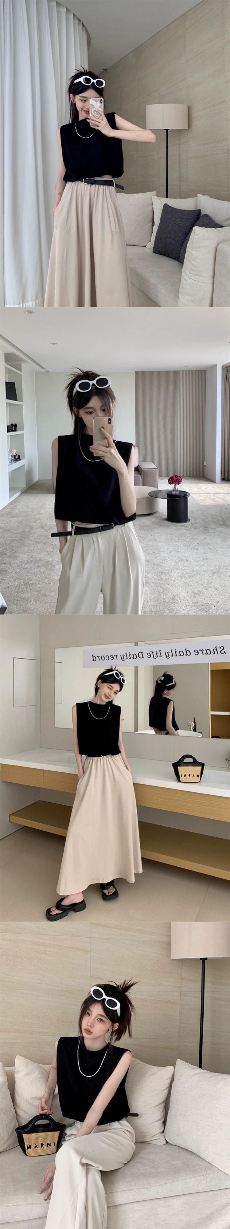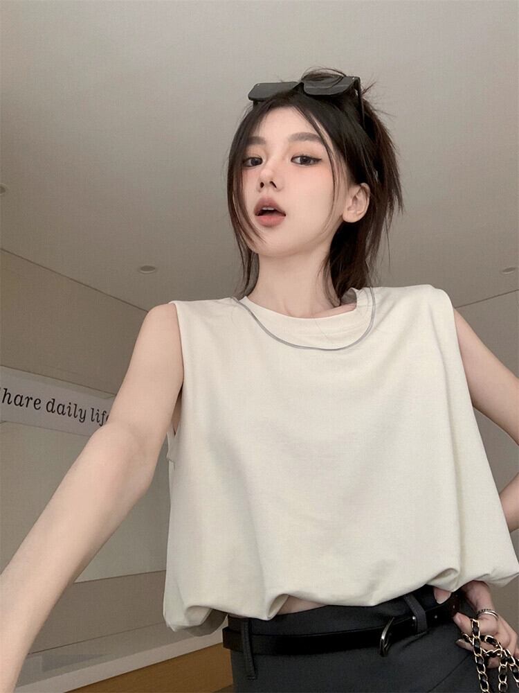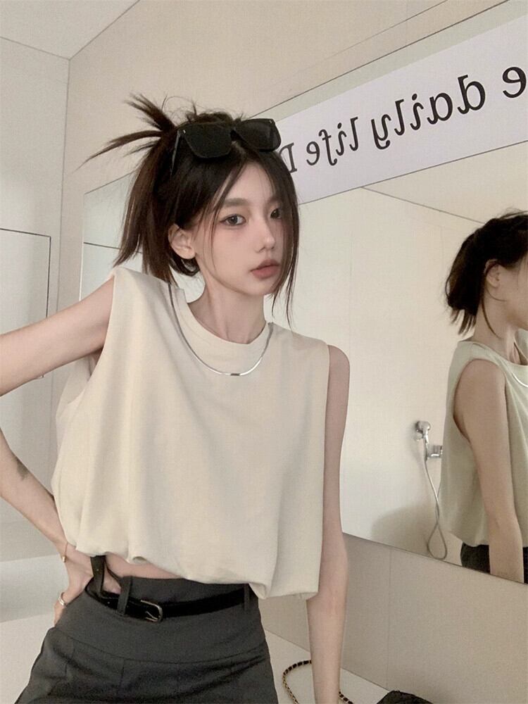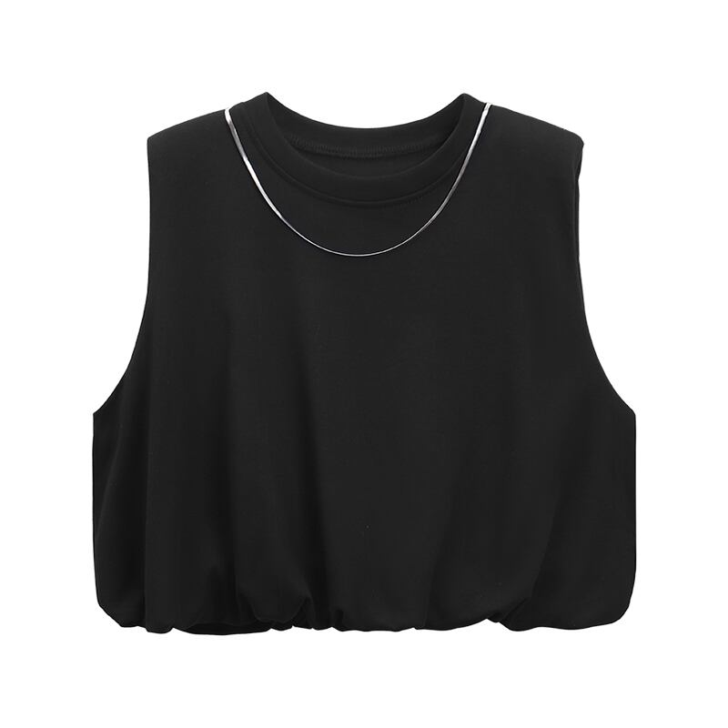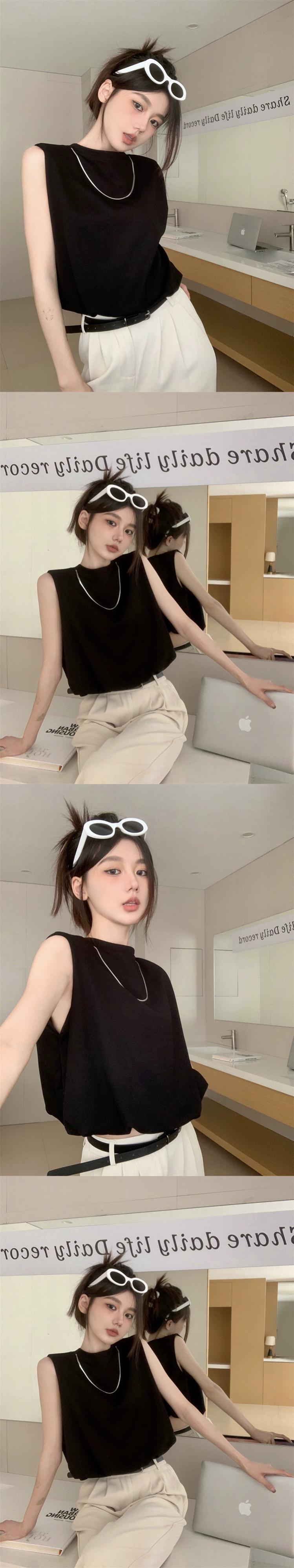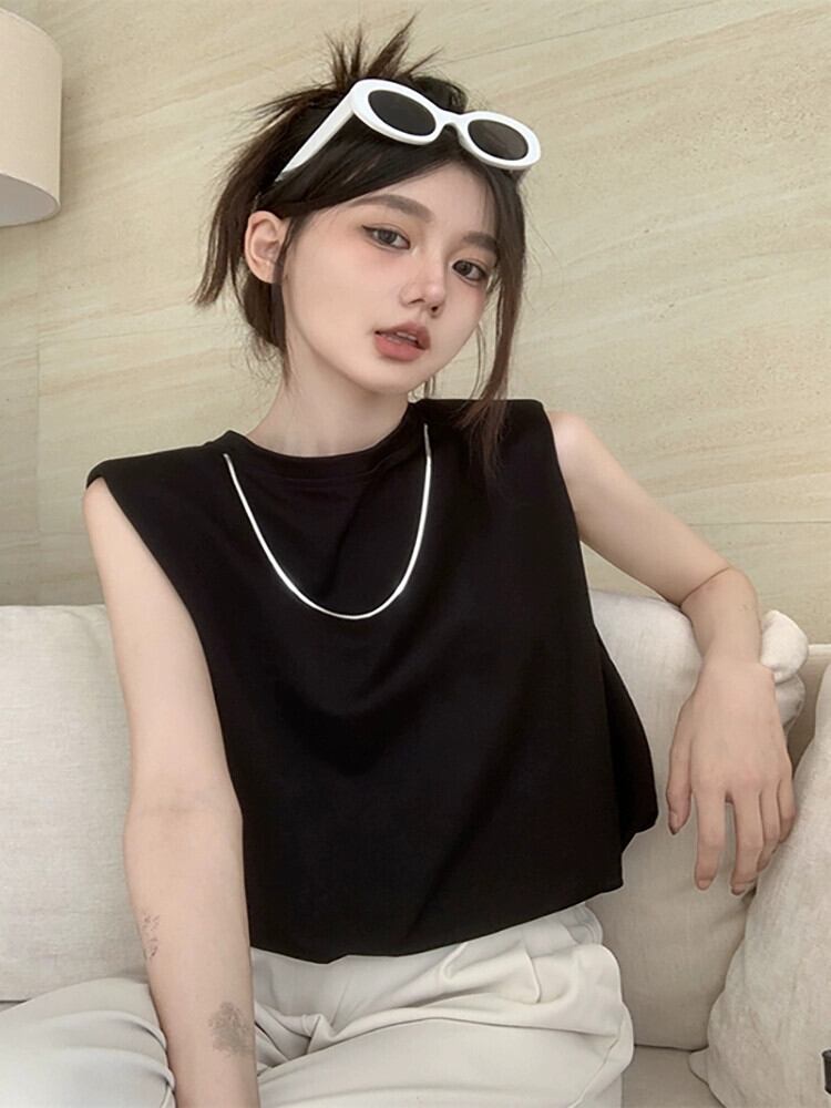 ノースリーブ黒ベスト Tシャツ女性の夏の新しいレトロな香港スタイルのデザインセンスニッチショートアウタートップ ブラック サマー 夏物 missk8382229228
