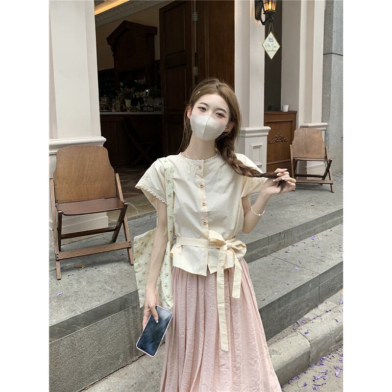 優しいスタイルのレースレース気質シャツ女性の2023年夏新しいデザイン感覚のウエストと薄い半袖シャツ サマー 夏物 missk80432945040