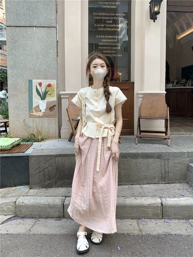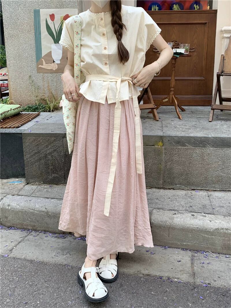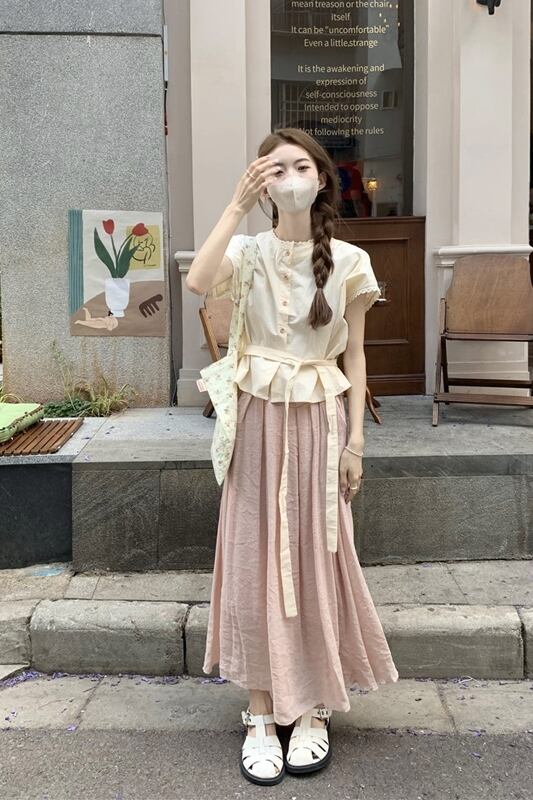 色:ピンクトップ,アプリコットトップ,ピンクのスカート,アプリコットスカート
