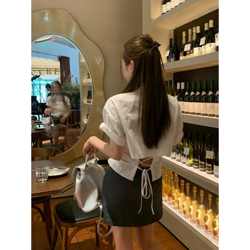 白バックネクタイ半袖シャツ女性の夏の新しい甘いルーズなデザイン感策略気質トップ潮 ホワイト 大人ガーリー スウィート キュート カジュアル サマー 夏物 missk48075524889