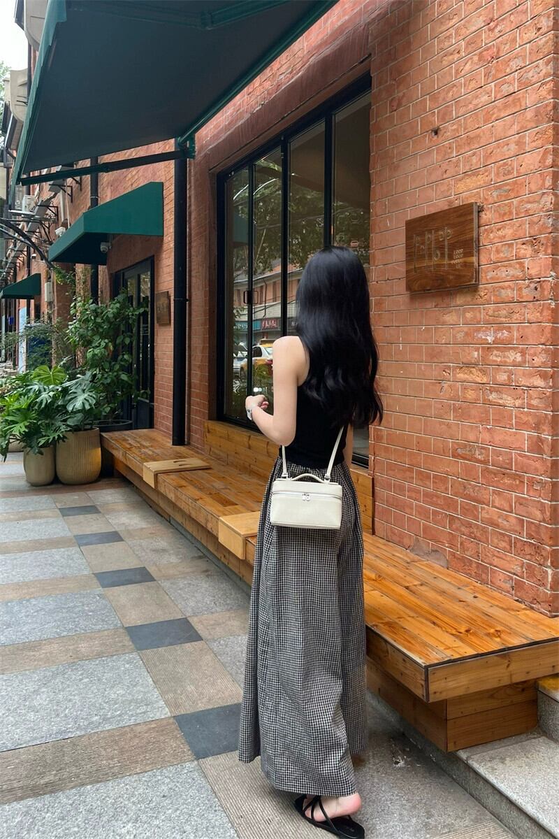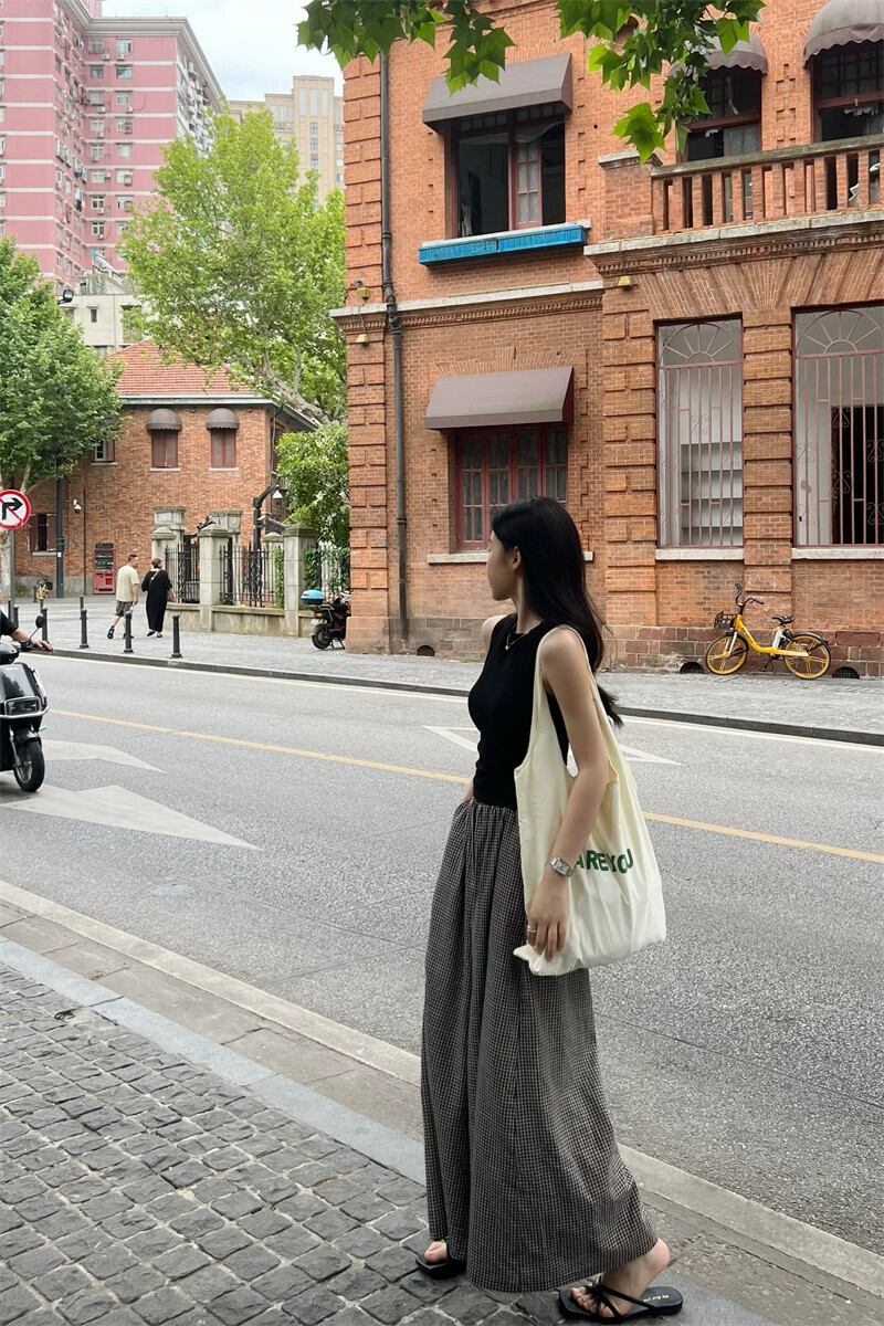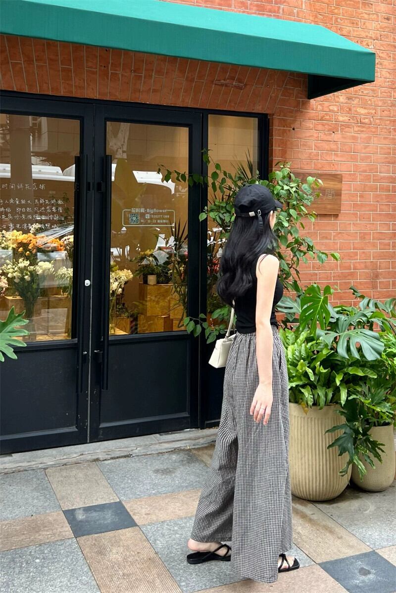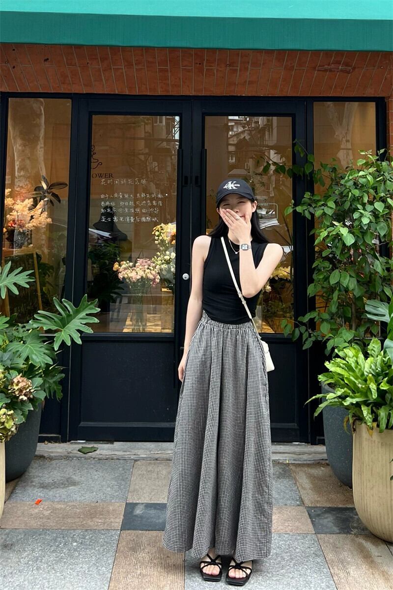 怠惰なスタイルのレトロなチェック柄カジュアルパンツ女性の夏の新しいハイウエスト痩身西洋スタイルオールマッチワイドレッグ 9 点袴トレンド ハイウェスト サマー 夏物 missk169130863