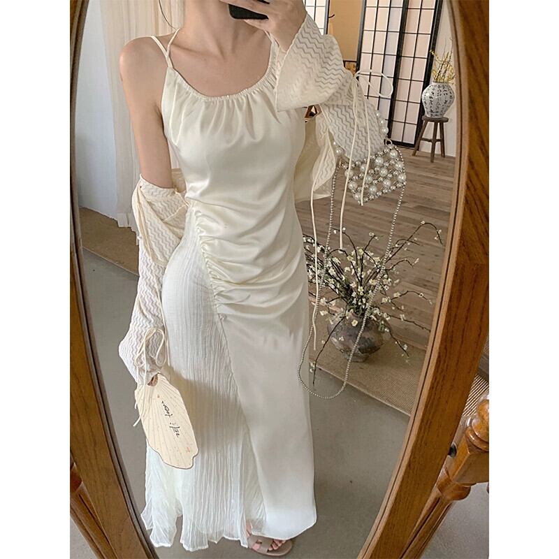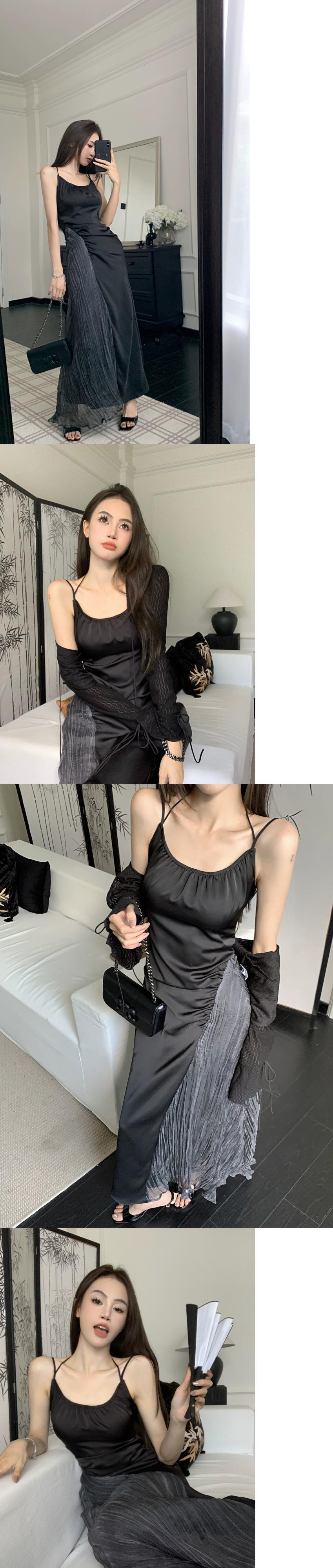 - エンドメッシュステッチスリングドレス夏の新しいフレンチウエストデザインシックなセクシーなロングスカート女性 サマー 夏物 missk27099430977