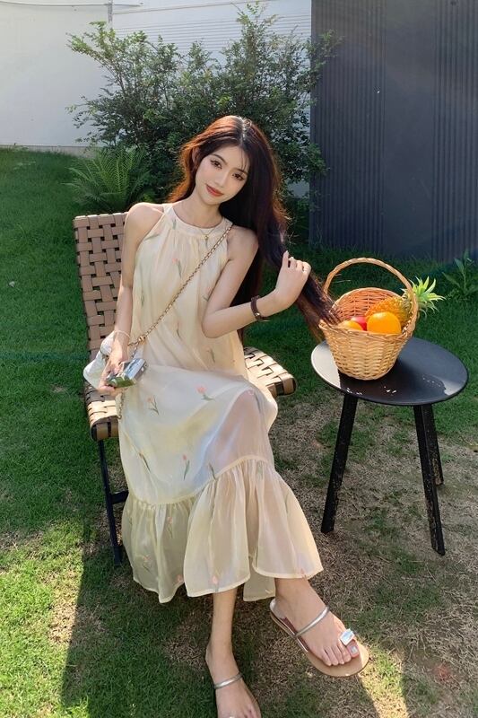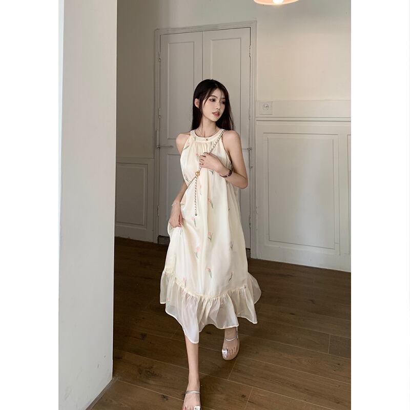 フランスのエレガントな吊りネックドレスの女性の夏の新しいレトロなルーズ花刺繍気質ロングスカートシック サマー 夏物 花柄 missk44090871401