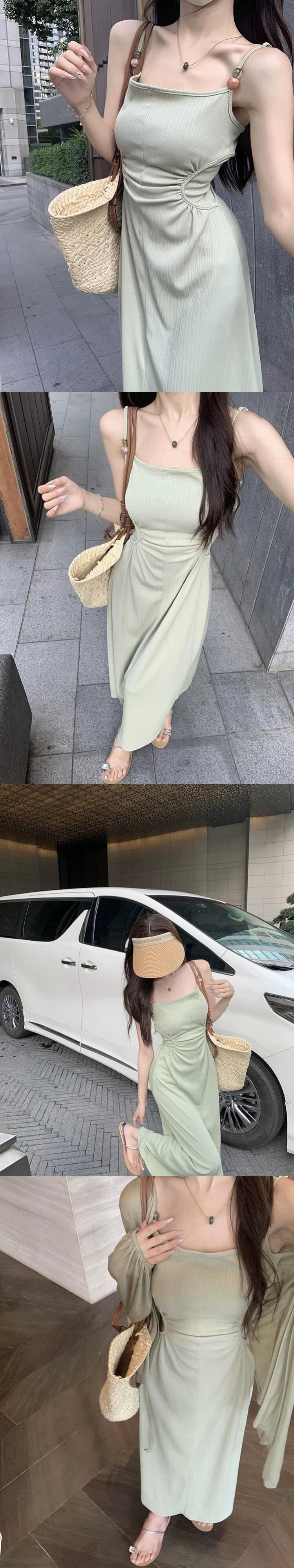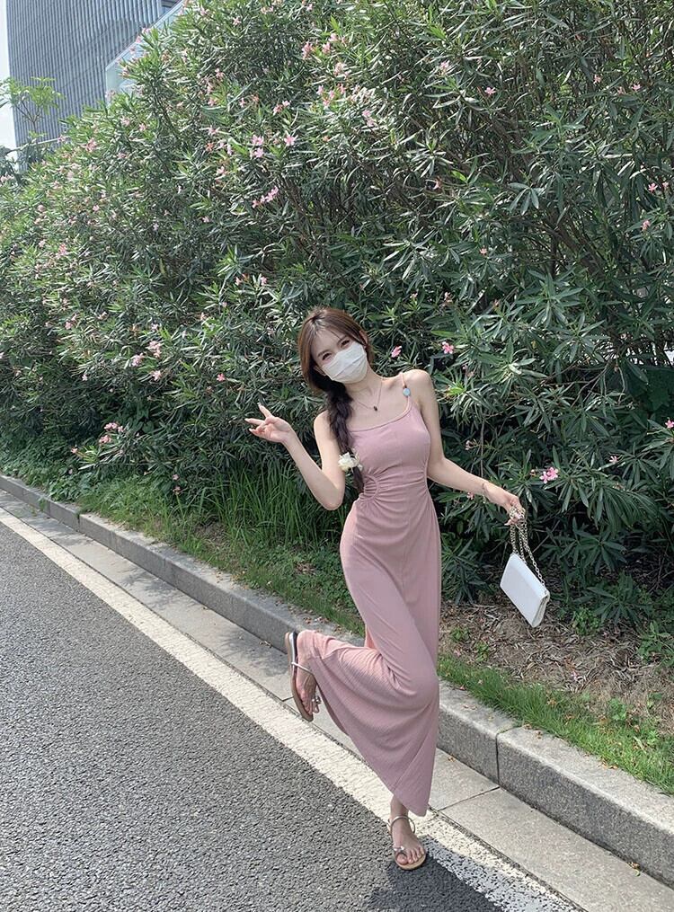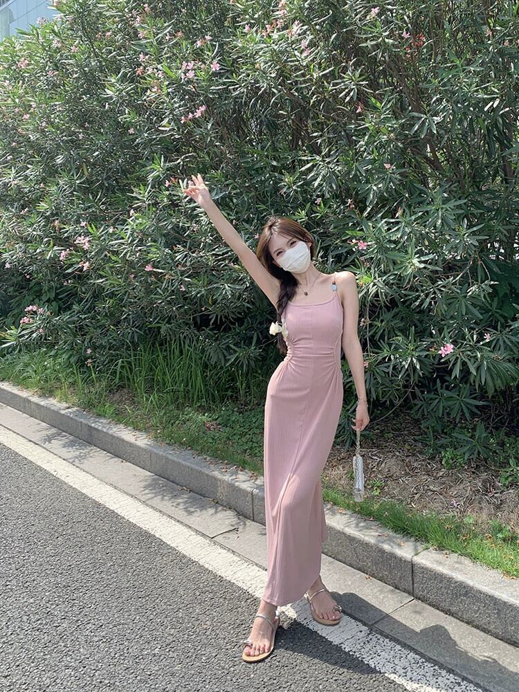 スパイススタイルプリーツニットサスペンダードレス女性の夏の新しいデザインセンスシックなウエストと気質バッグヒップロングスカート サマー 夏物 missk24170528297