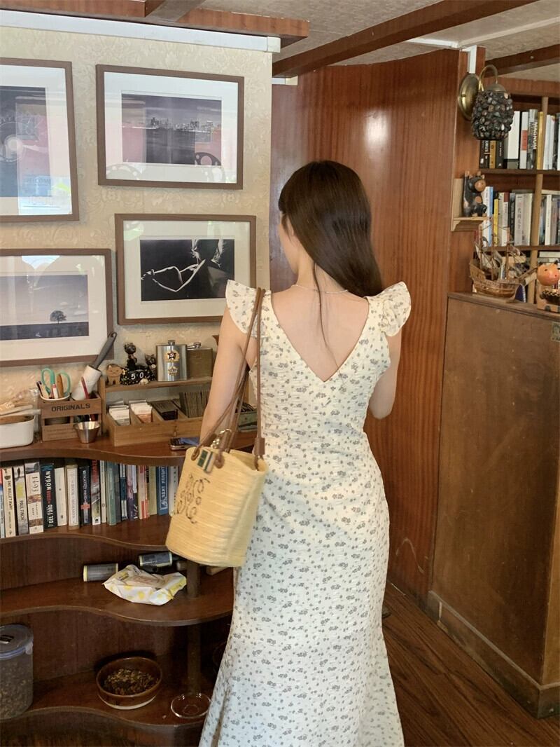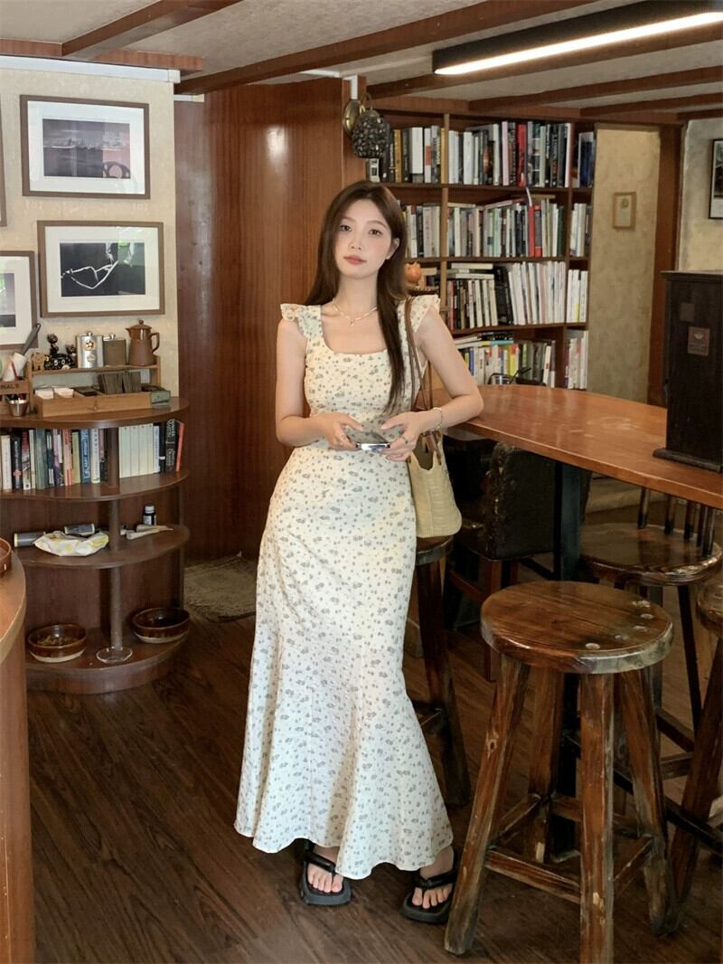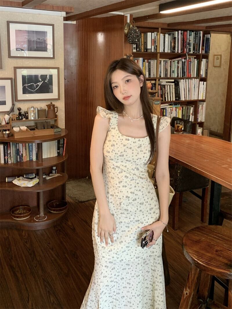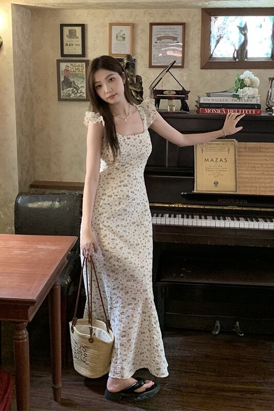 夏 2023 フレンチスリムスリムスリムフライングスリーブスクエアネックバッグヒップスリングドレス女性の サマー 夏物 スクウェア missk75382424317