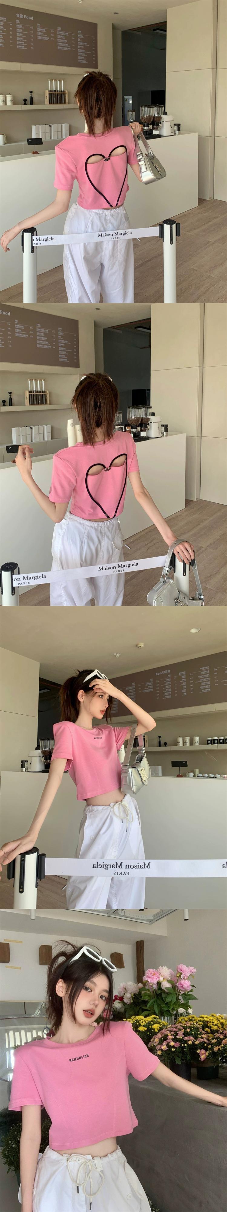 Hollow Love 半袖 T シャツ レディース 夏バージョン 2023 新しいデザインの文字プリント スリムフィットと薄手のトップ サマー 夏物 Tシャツ missk6727015436