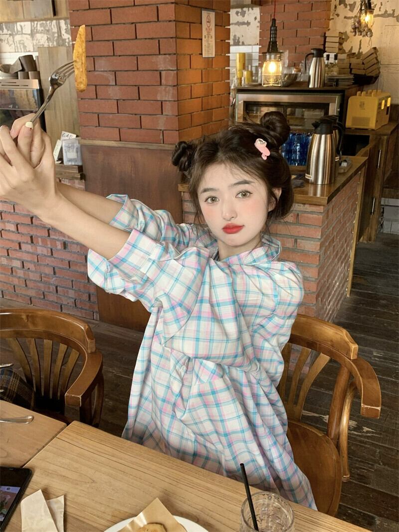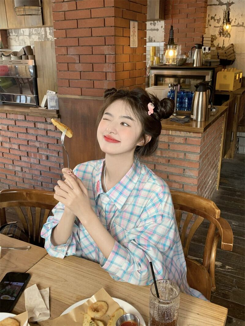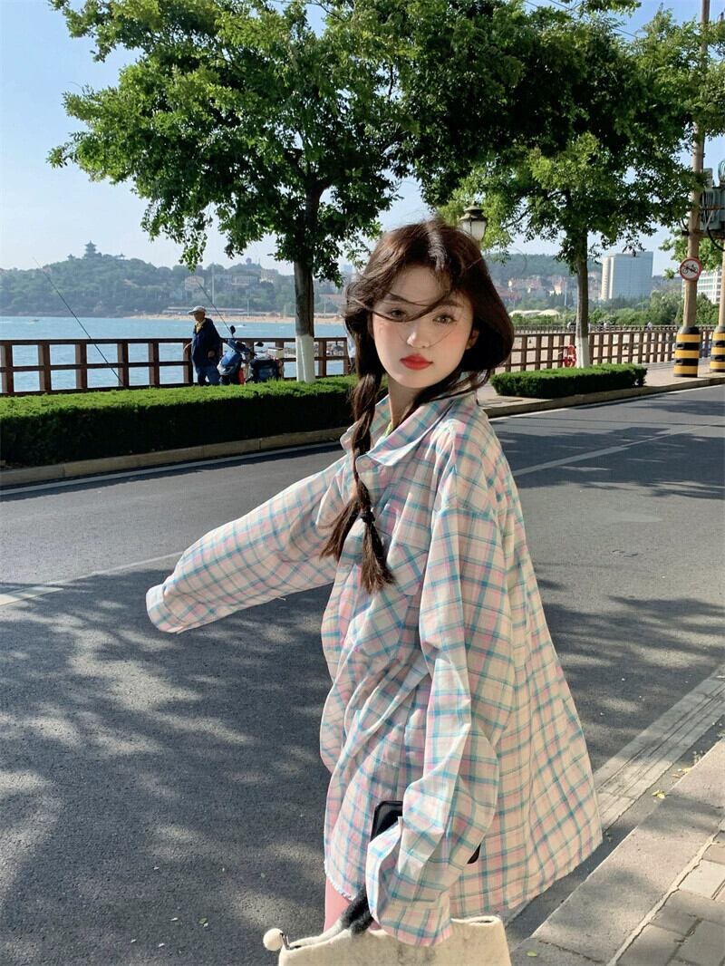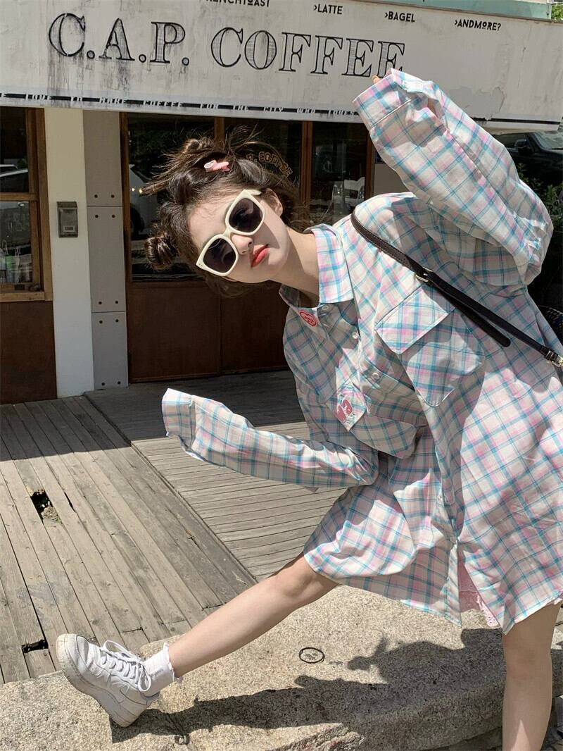 甘いかわいいカラーチェック柄長袖日焼け止めシャツ夏の新しいルース刺繍ミッドレングスコートトップ女性 ロング 大人ガーリー スウィート キュート カジュアル サマー 夏物 missk21032705317