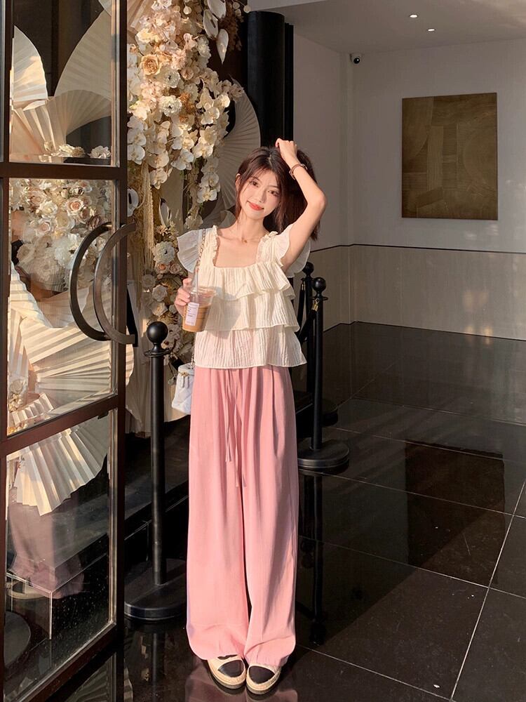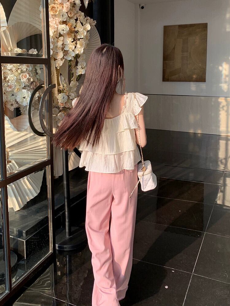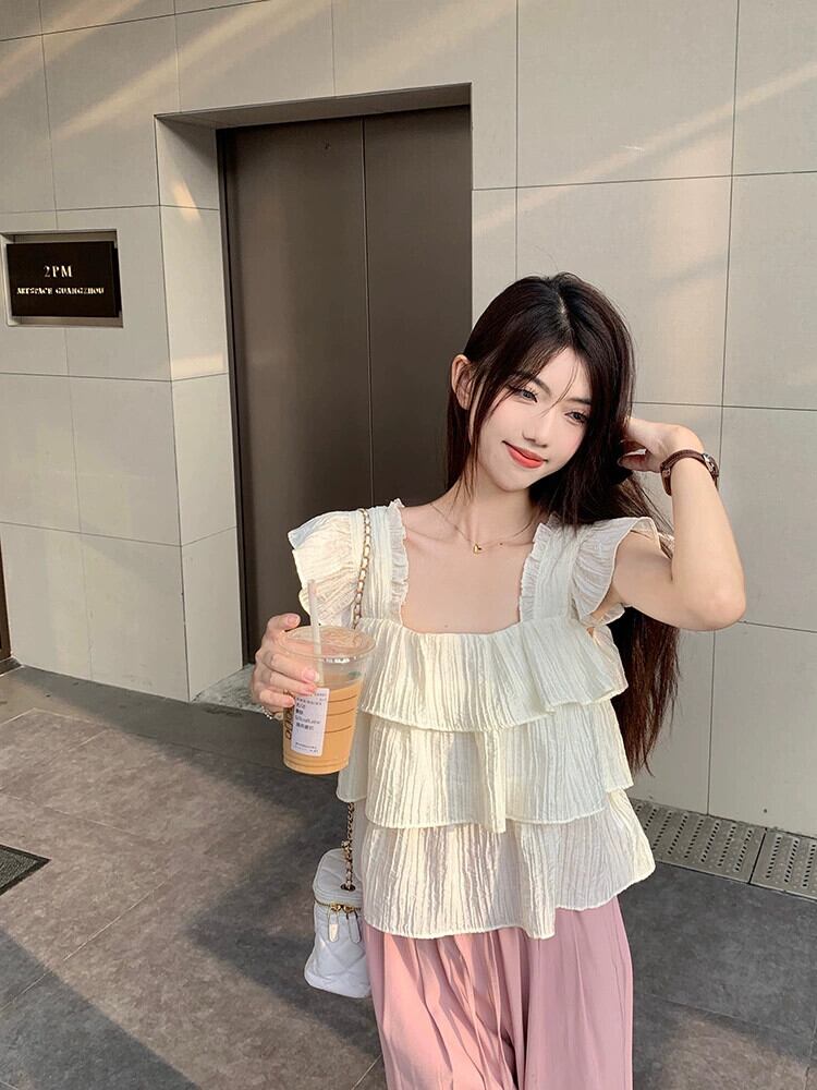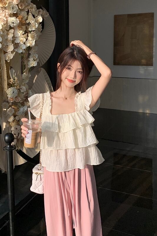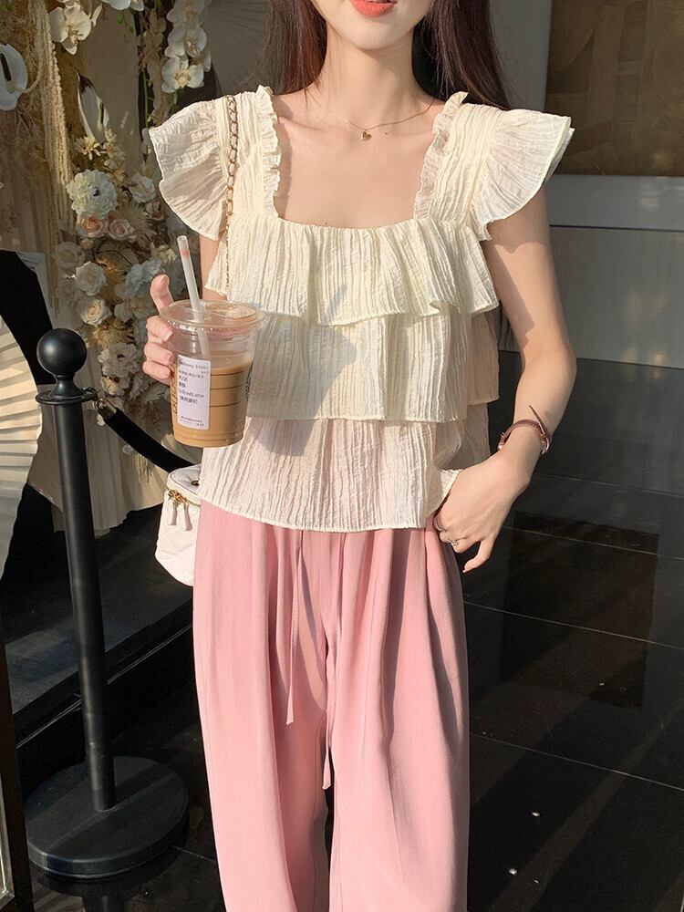 フライングスリーブシフォンシャツレディース2022年夏新デザインフリル感スリムフィットスリムショートシック小さめシャツ ラッフル サマー 夏物 missk89787003358
