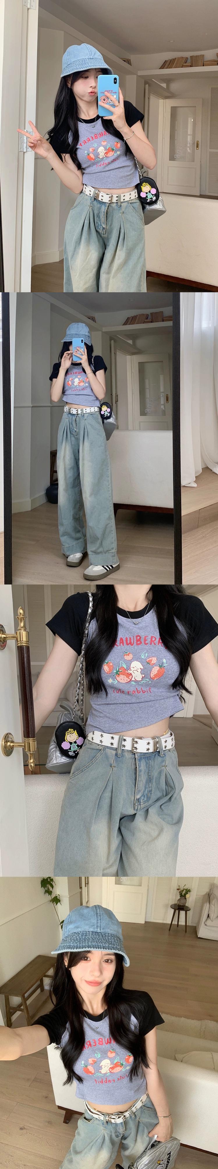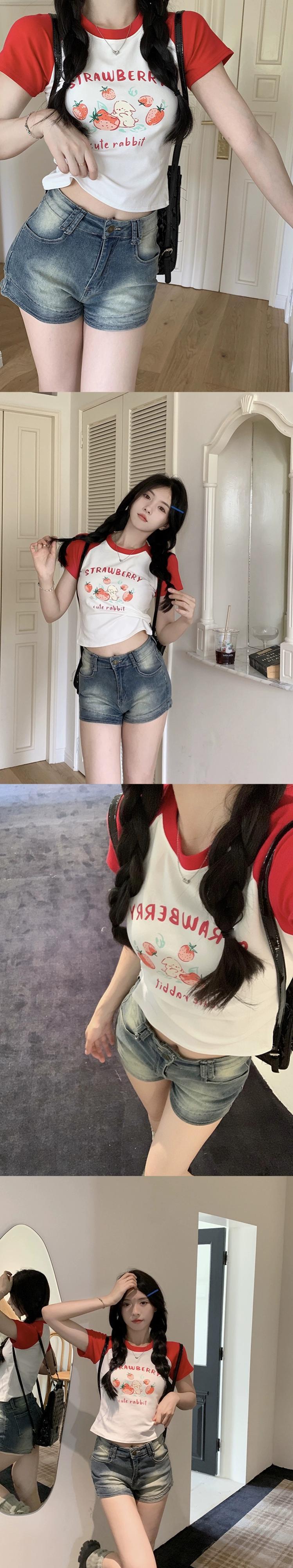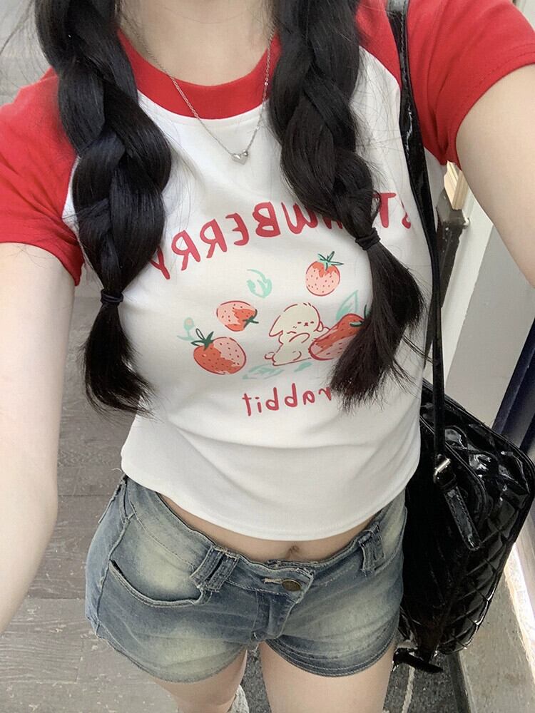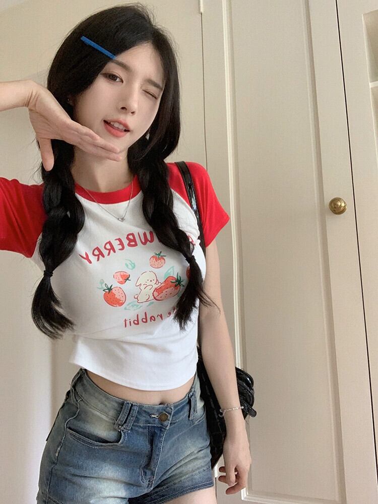 コントラストカラーラグランスリーブTシャツレディース夏新作甘辛BM風レタープリントスリムショートフロントショルダー半袖トップス 大人ガーリー スウィート キュート カジュアル サマー 夏物 missk60395570535