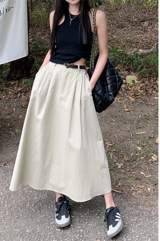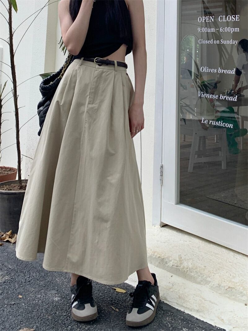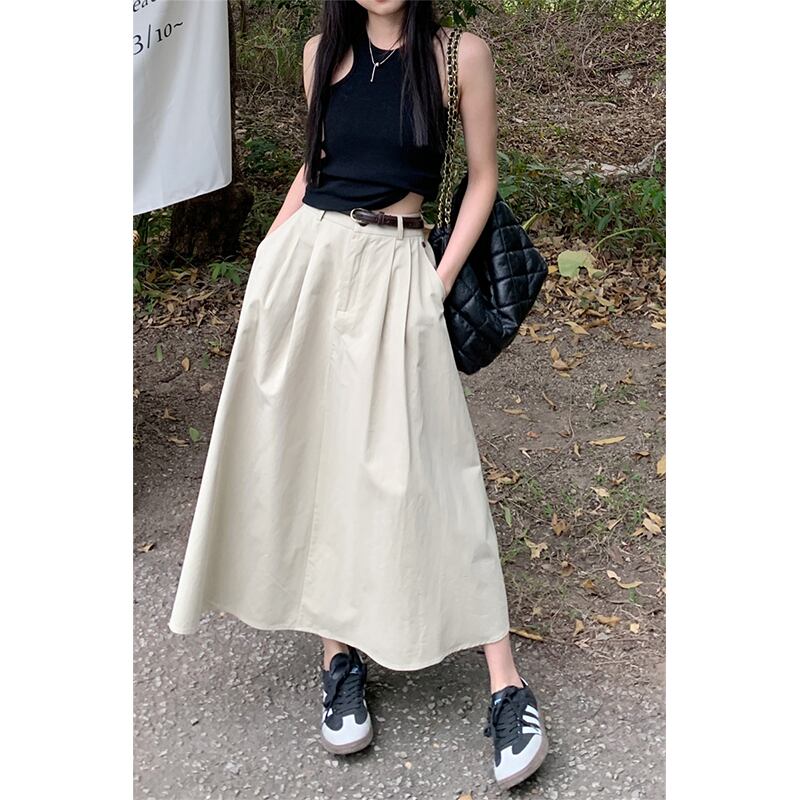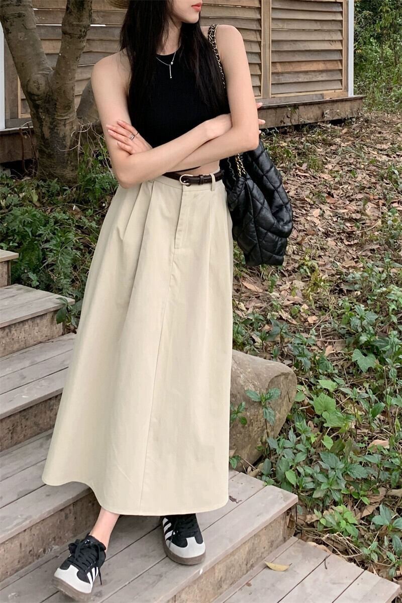 ese レトロスカート女性の夏の新しいハイウエストデザインセンスニッチルーズ A ラインロングスカート黒スカート ハイウェスト ブラック サマー 夏物 Aライン missk39328566828