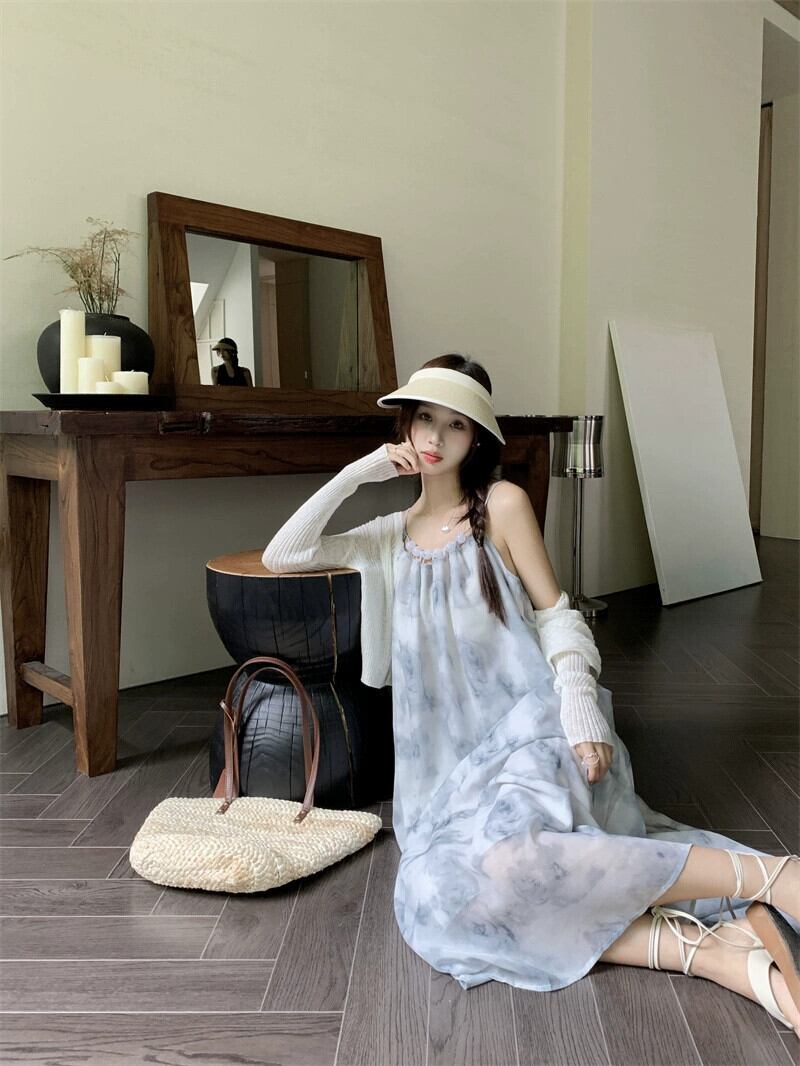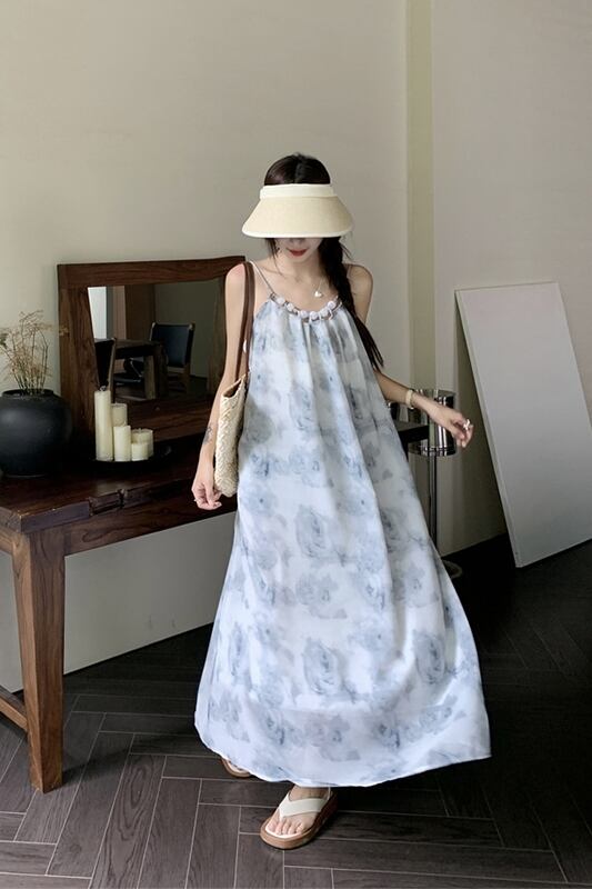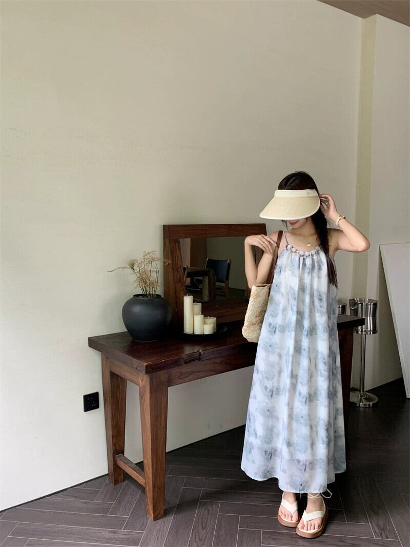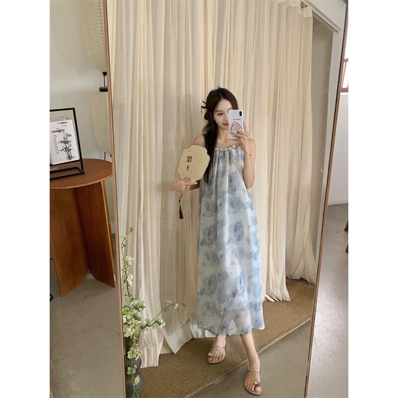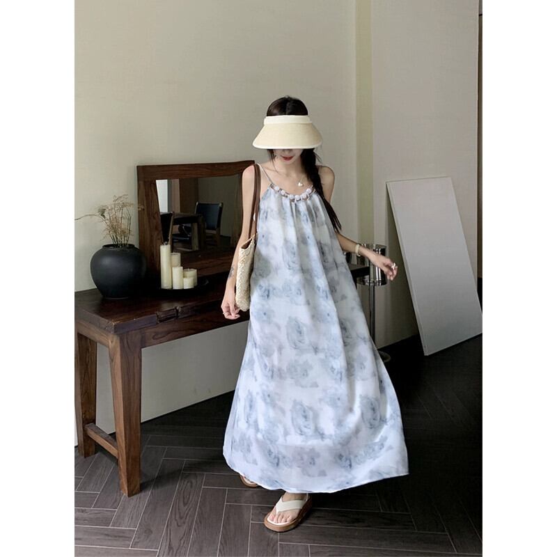 フレンチインクスタイルサスペンダードレスレディース2023夏新作ミドル丈デザイン感覚ゆったりお腹カバーAラインスカート サマー 夏物 missk9845294947