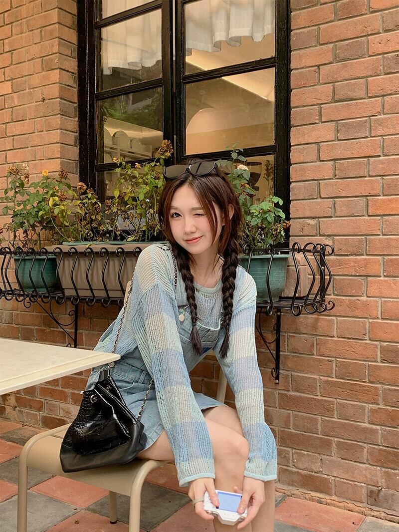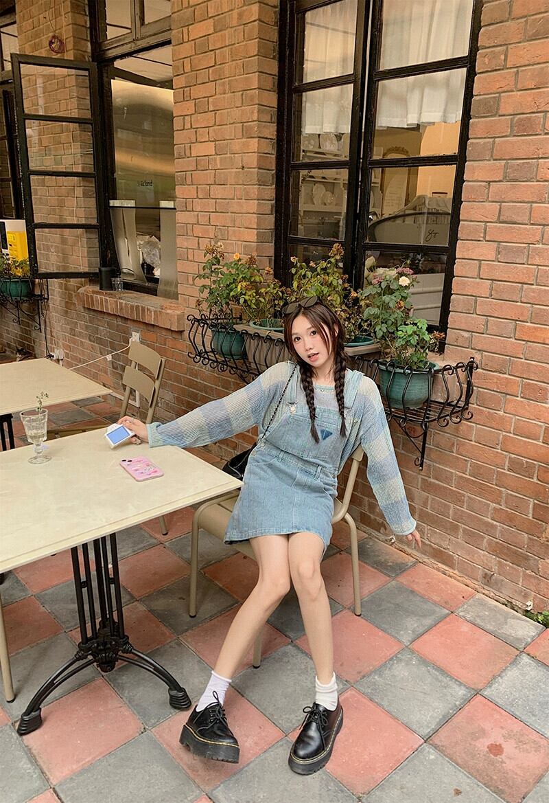 塩は甘い色のコントラスト長袖日焼け止めセーター女性の夏の新しいハイウエストストラップデニムドレス 2 点セット ハイウェスト ロング 大人ガーリー スウィート キュート カジュアル サマー 夏物 missk50616199930