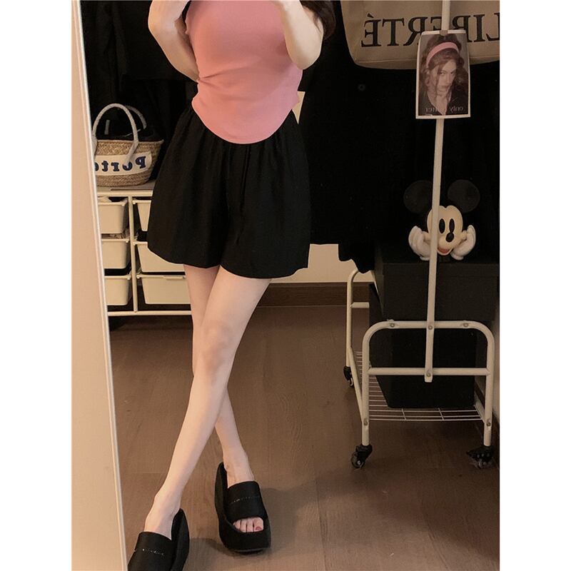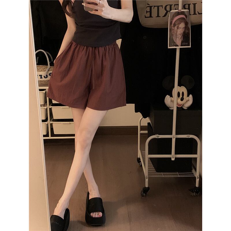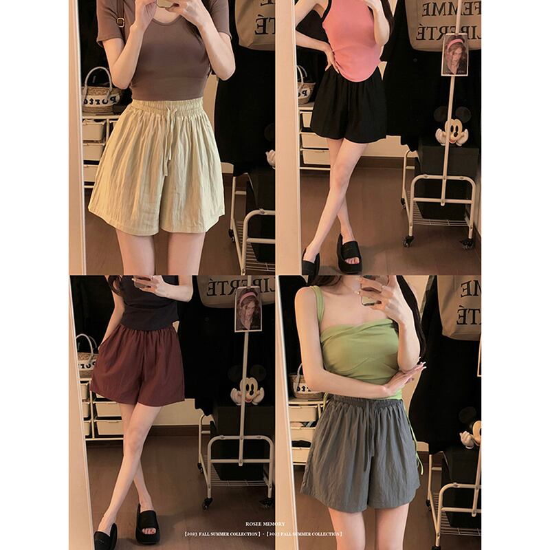 巾着プリーツ薄型カジュアルパンツレディース夏新作ハイウエスト薄型ファッションオールマッチ A ラインワイドレッグショーツシック ハイウェスト サマー 夏物 ブルマー Aライン missk88535186835