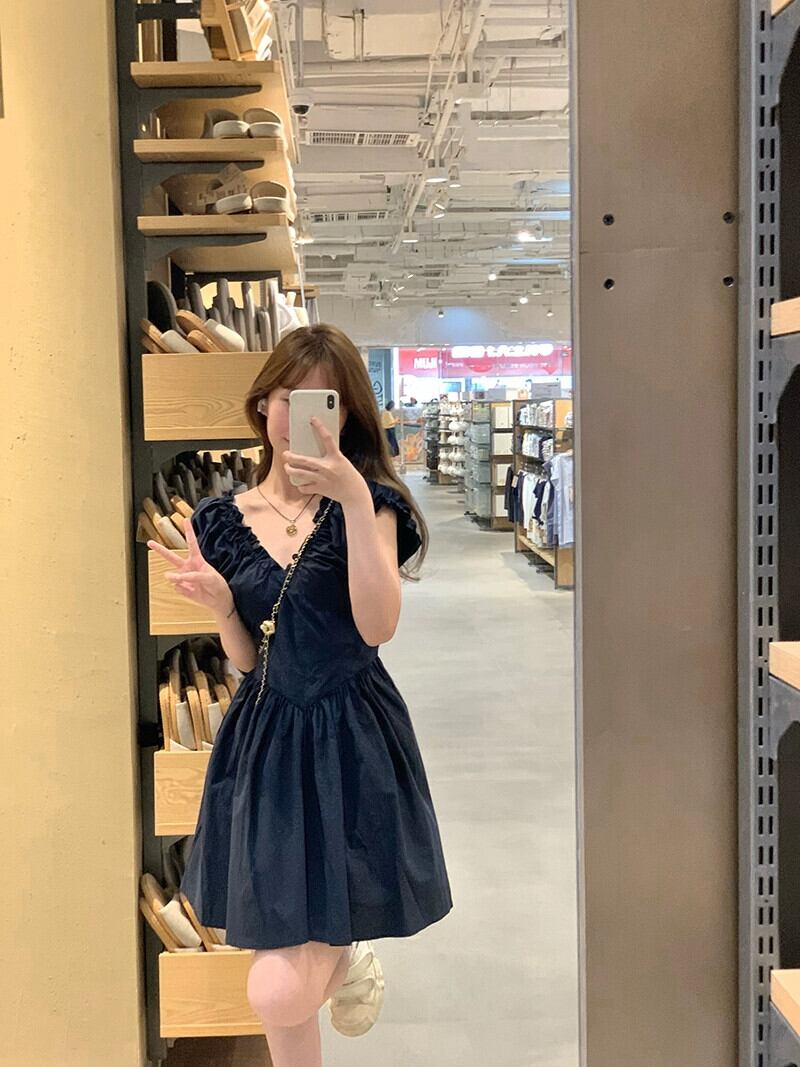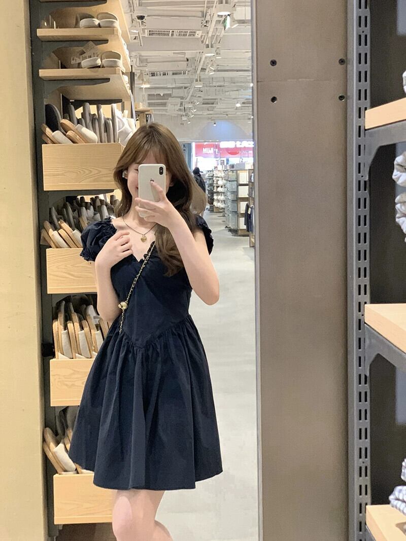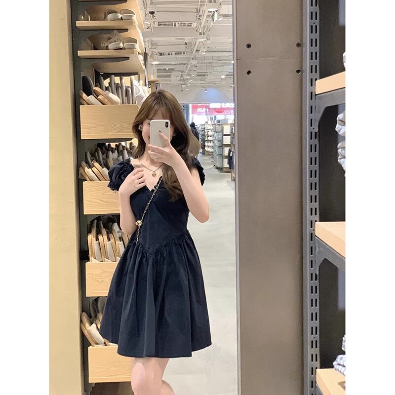 フレンチ V ネック パフスリーブ ワンピース レディース 夏新作 ハイウエスト デザイン ヒダ感小さめ 一言スカート シック ハイウェスト サマー 夏物 Vネック missk80688239283