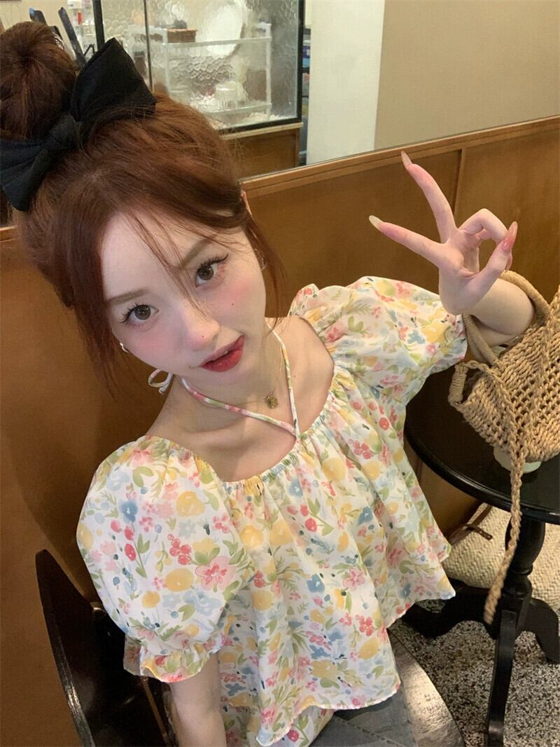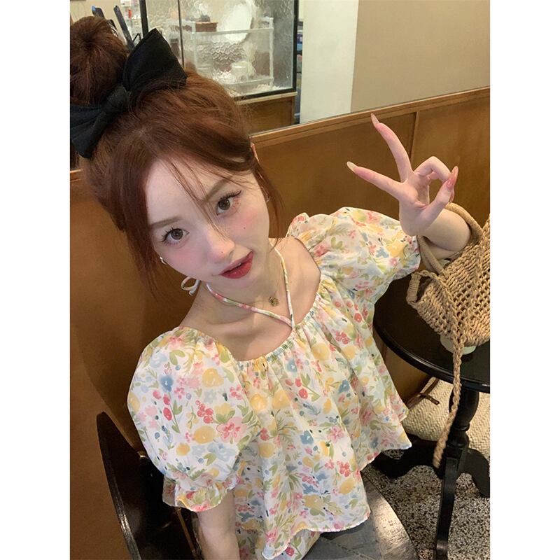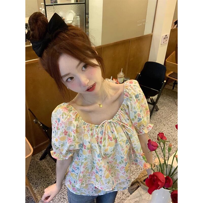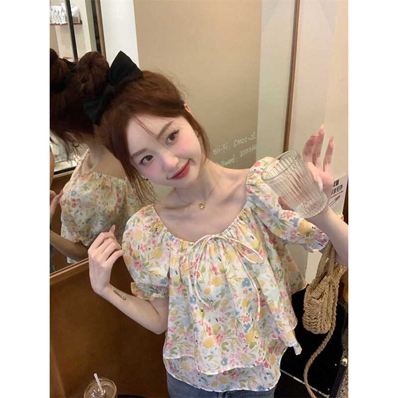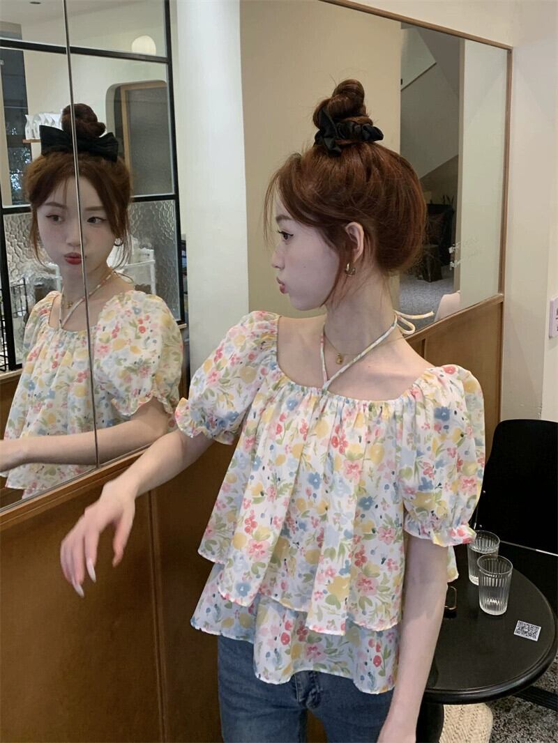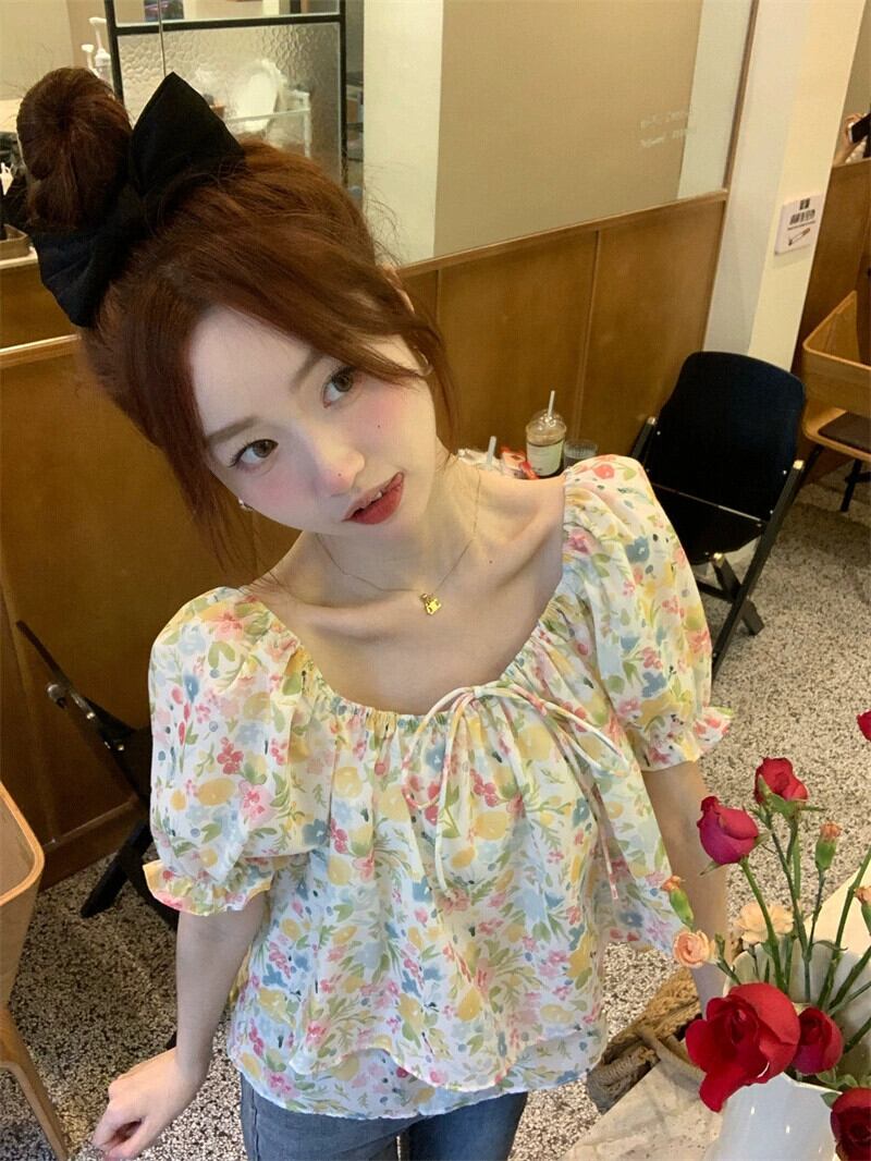 甘いスタイルのスクエアカラーパフスリーブシャツ女性の夏の新しいフランスのファッションデザインセンスニッチドールシャツトップ潮 大人ガーリー スウィート キュート カジュアル サマー 夏物 スクウェア missk89136381788