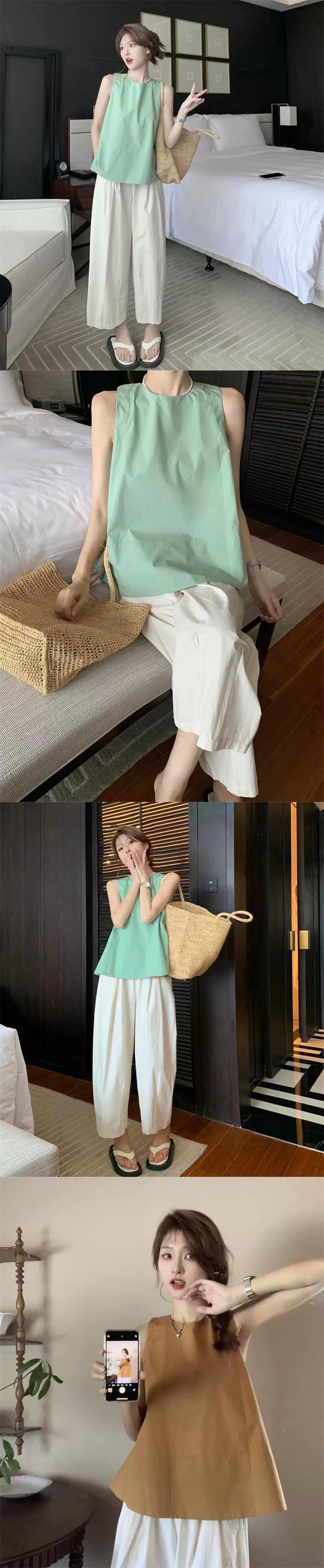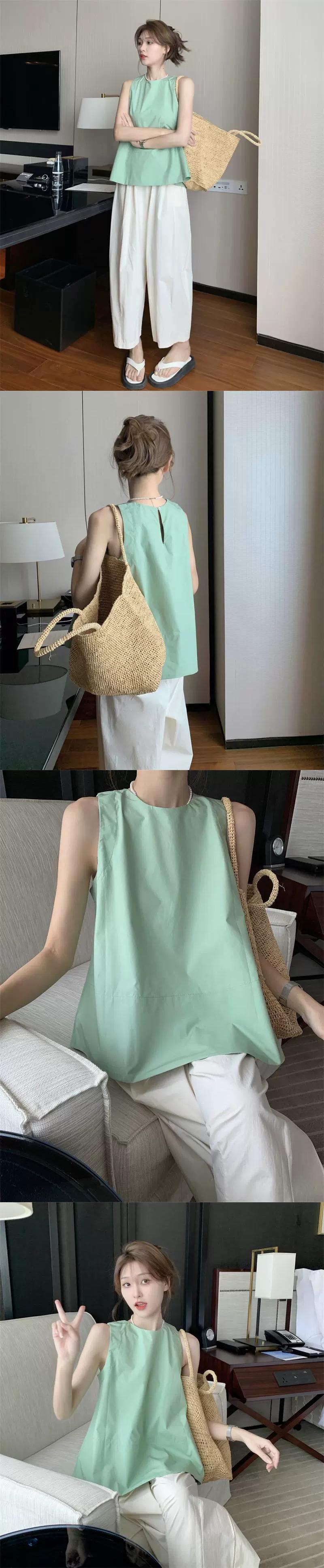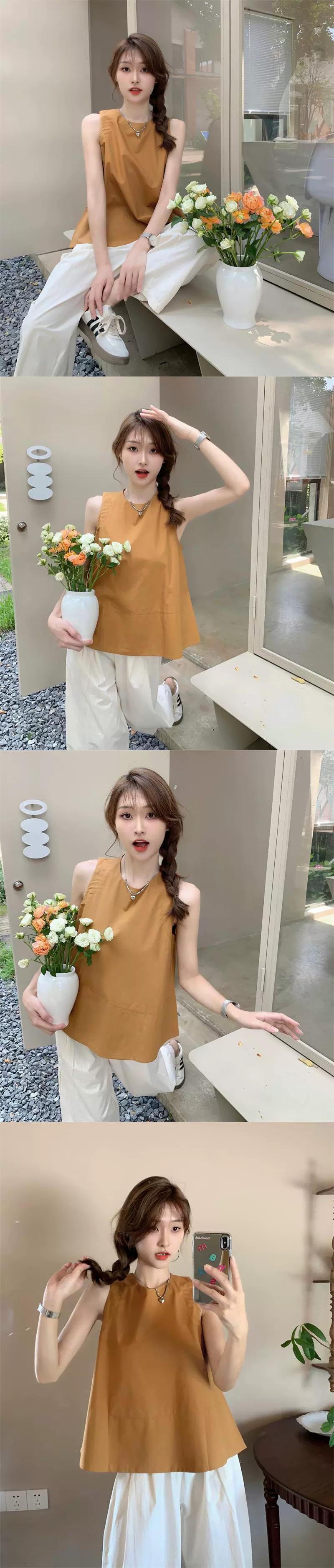 ラウンドネックルーズノースリーブベストレディース夏の新バージョン、年齢を軽減するオフショルダーデザイン感覚の内側と外側を着てキャミソールトップス サマー 夏物 Oネック missk34279024042