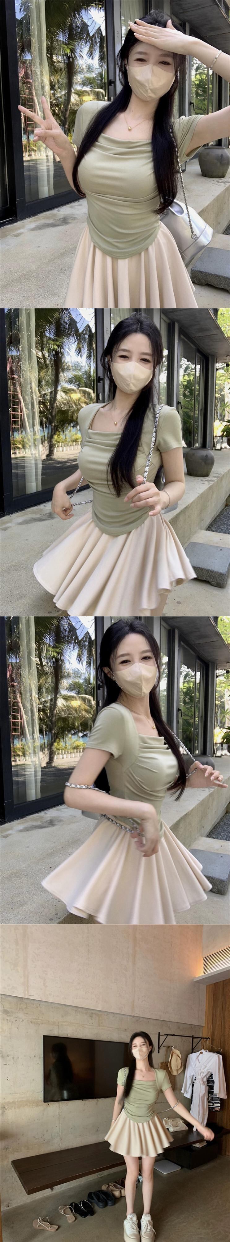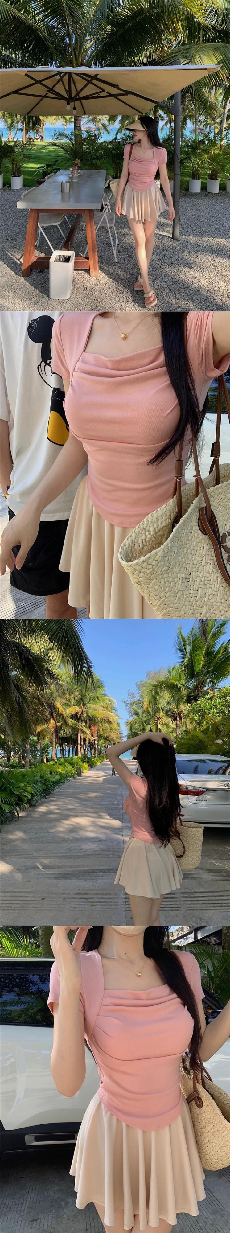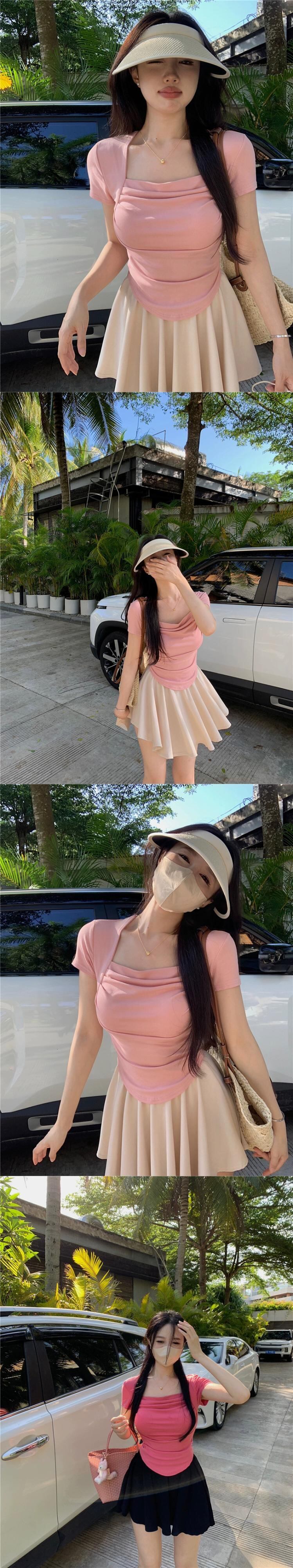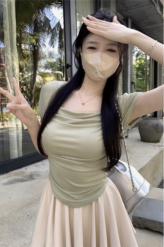 純粋な欲望スクエアカラー半袖Tシャツレディース夏新作自己修養ショートデザイン折り目感ウエストシックトップ サマー 夏物 スクウェア missk19773684627