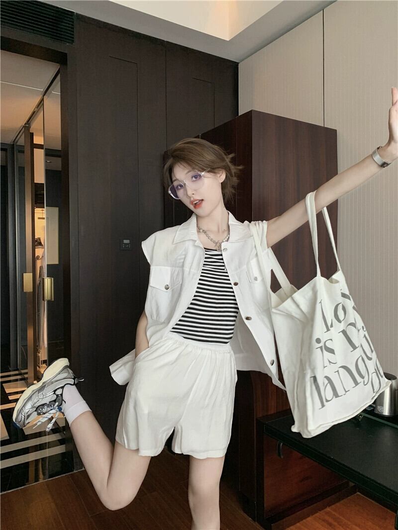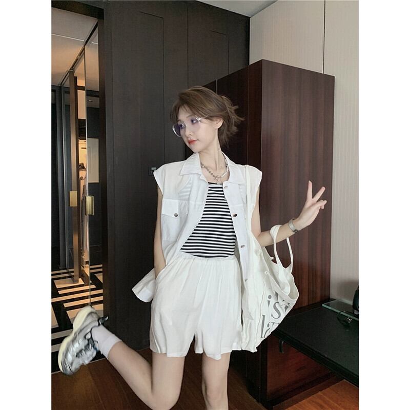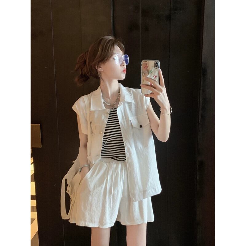 スーツ女性のツーリングスタイルラペルノースリーブベストトップハイウエストショートパンツ夏 2023 新しいツーピーススーツ ハイウェスト サマー 夏物 missk68005657270