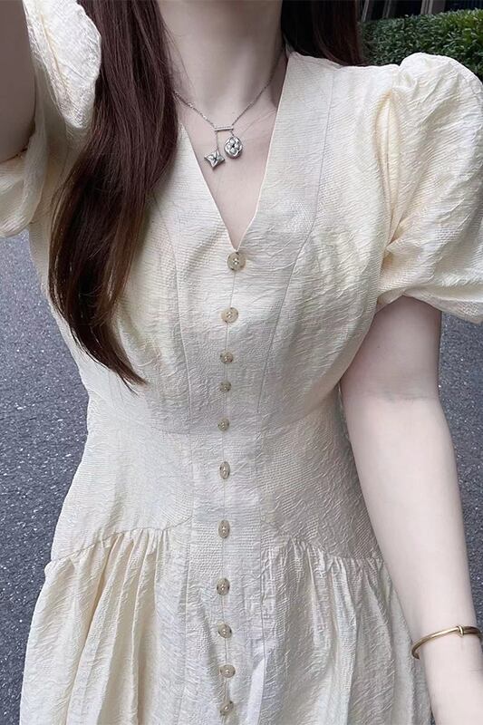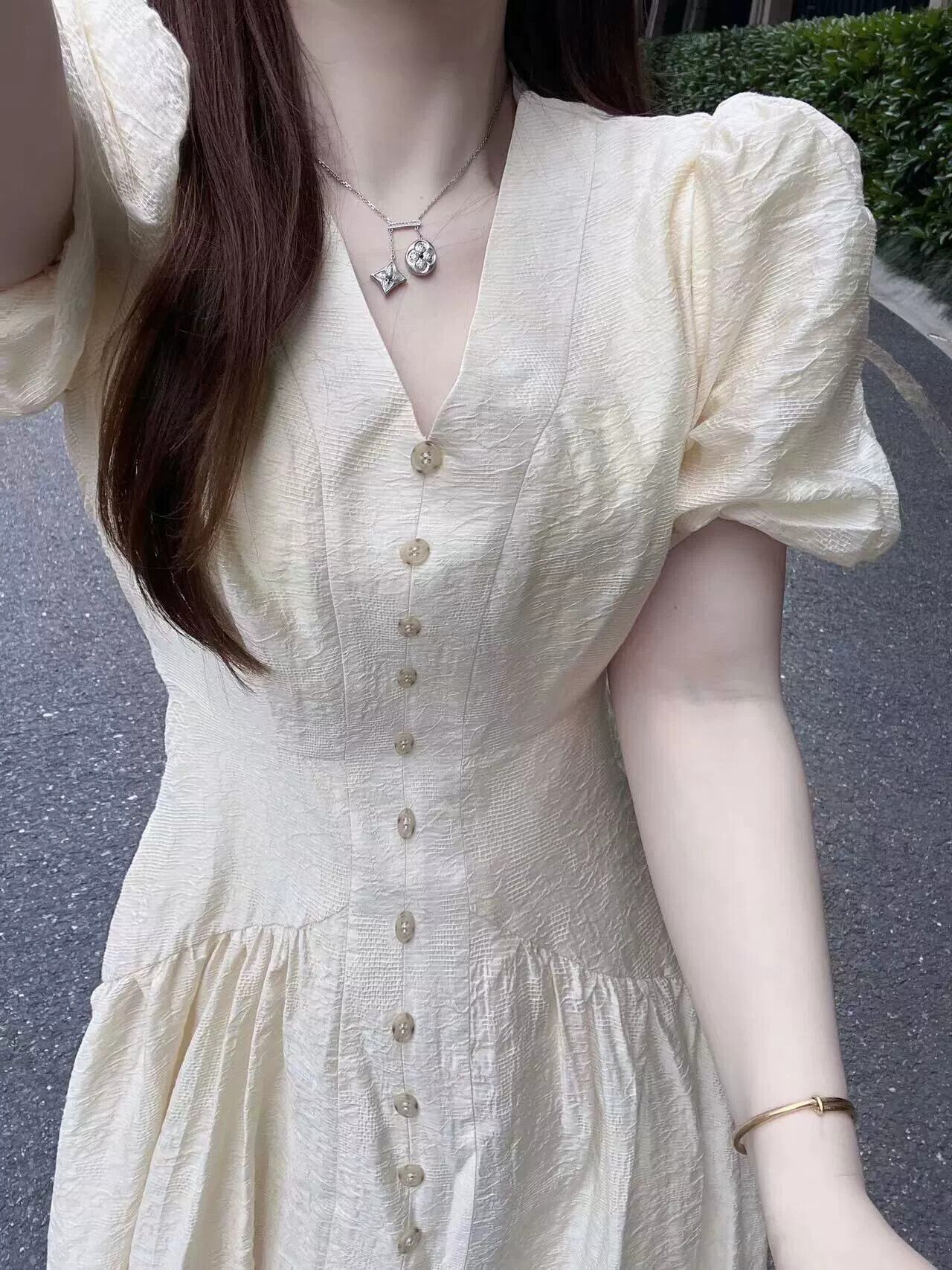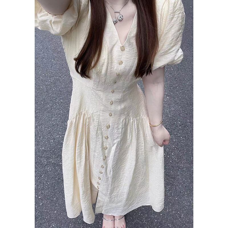 フレンチジェントルスタイルライトイエロードレス夏の新しいスタイルハイエンドeignスタイルシックなパフスリーブロングスカート女性ins サマー 夏物 missk28316926448