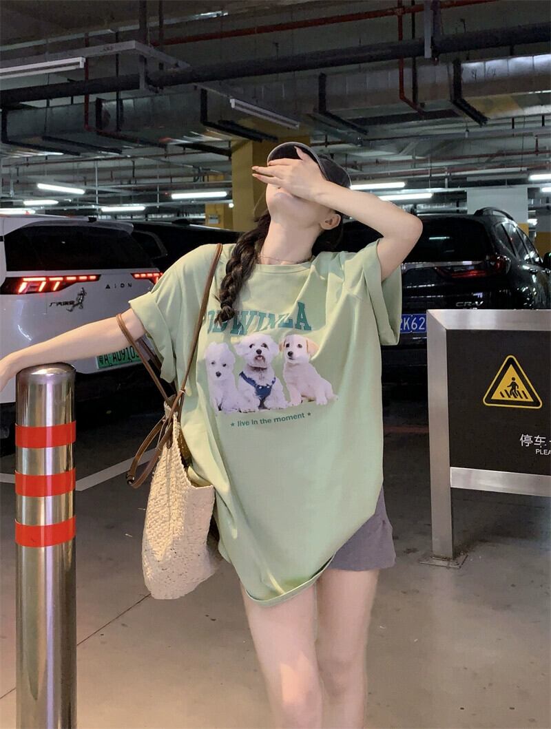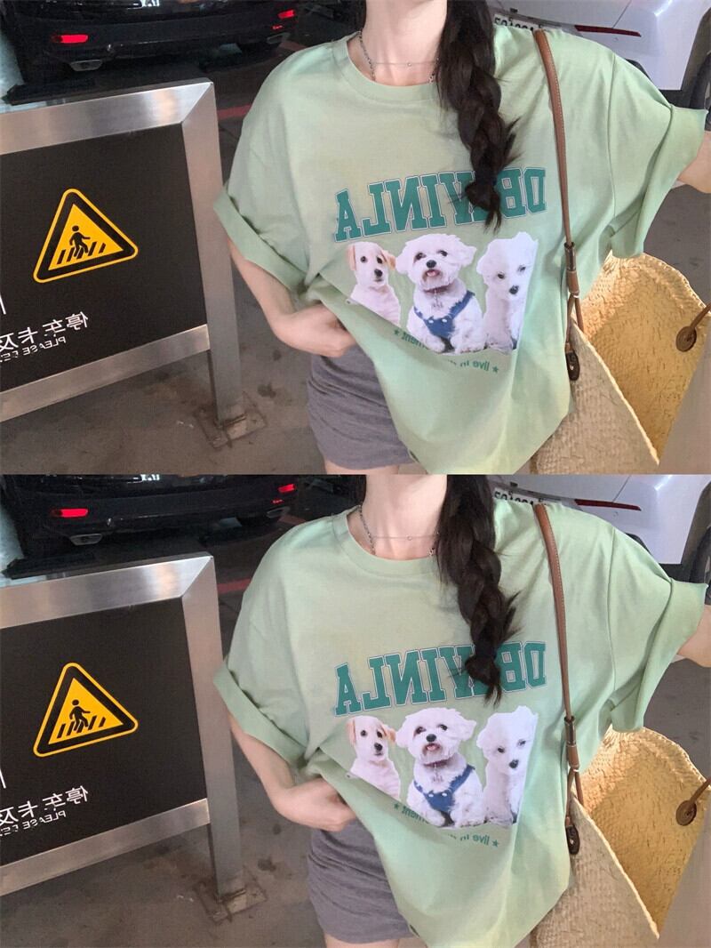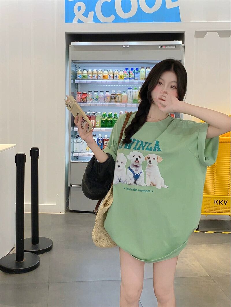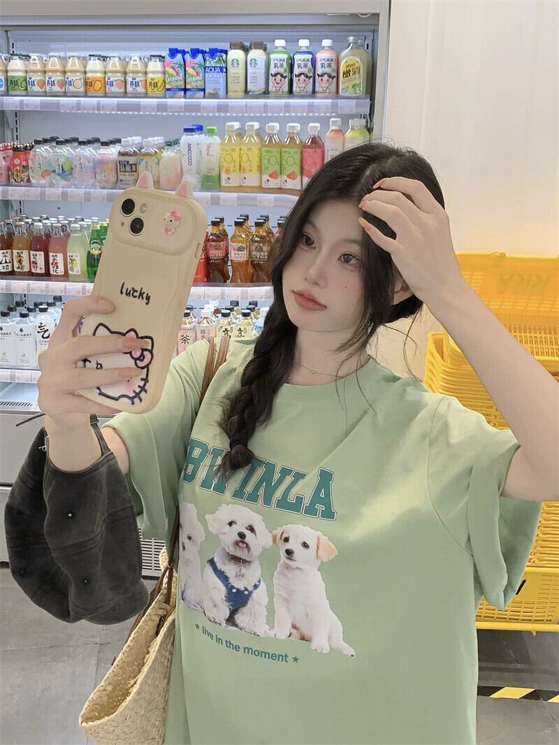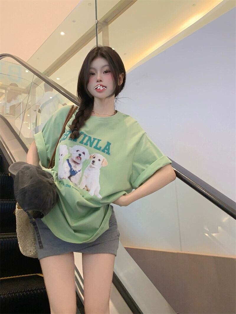 インスかわいいレタープリント半袖Tシャツレディース夏の新バージョンルーズカジュアルオールマッチラウンドネックグリーントップ 大人ガーリー スウィート キュート サマー 夏物 Oネック missk51752606851