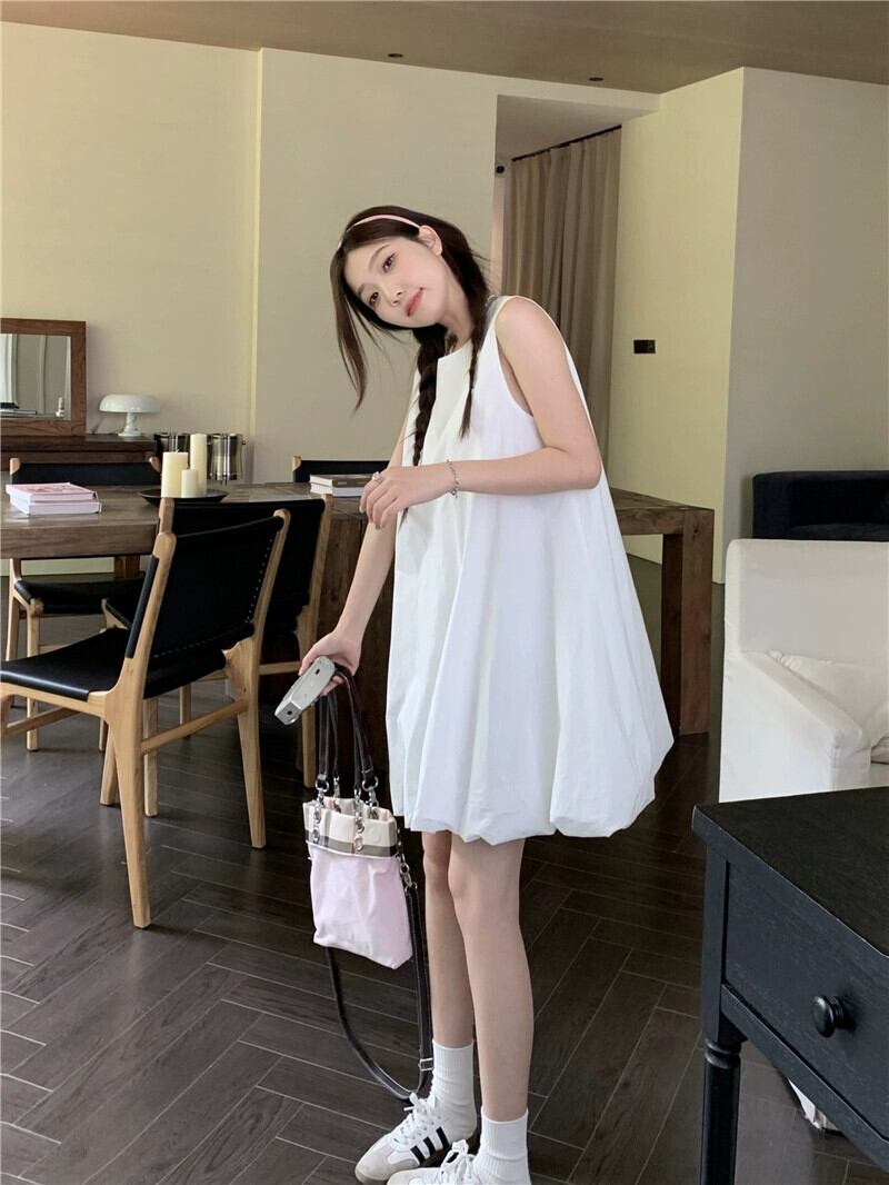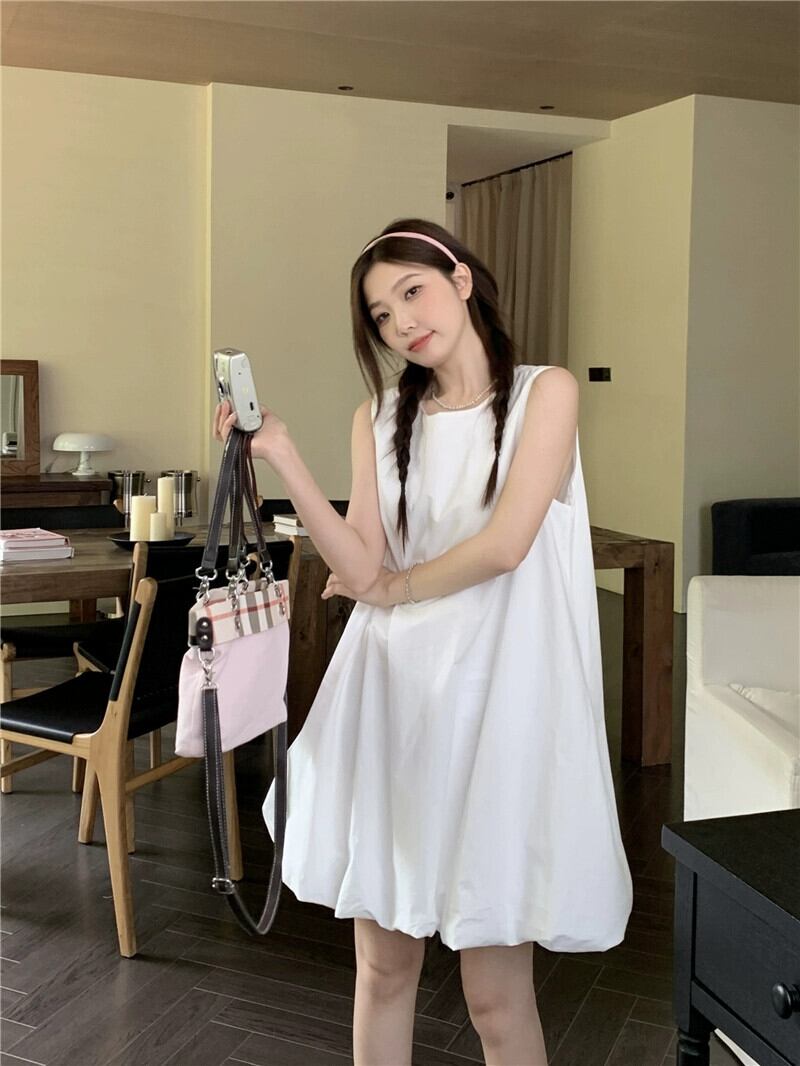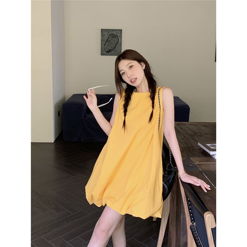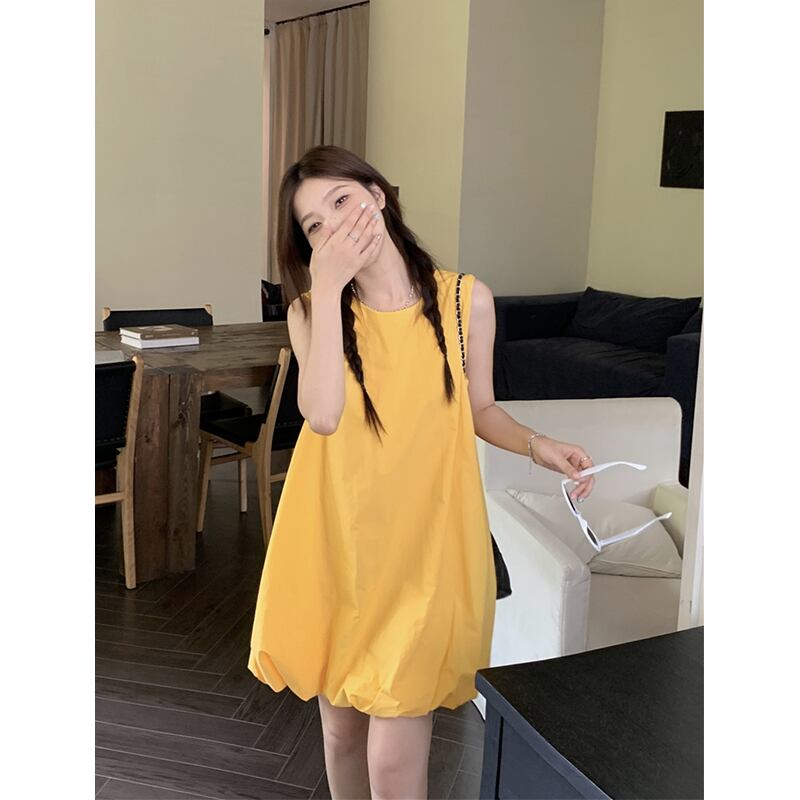 甘いふくらみのある A ラインのベストドレスの女性の 2023 夏の新しいデザイン感覚年齢を軽減するルーズノースリーブドールスカート 大人ガーリー スウィート キュート カジュアル サマー 夏物 Aライン missk39090550120