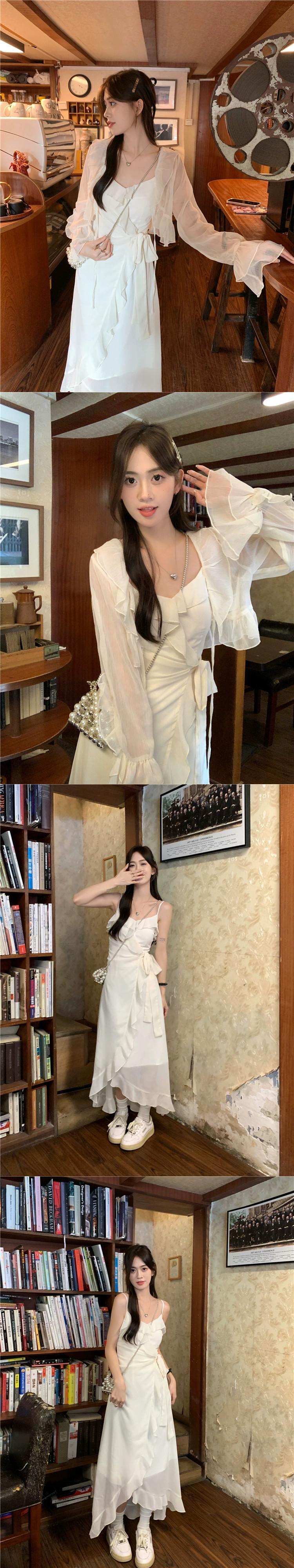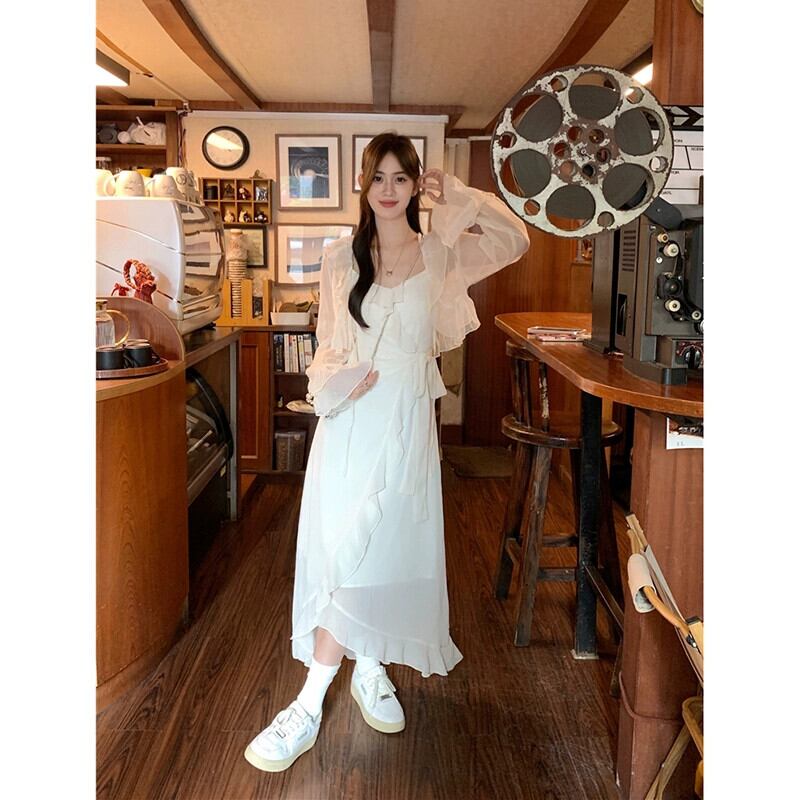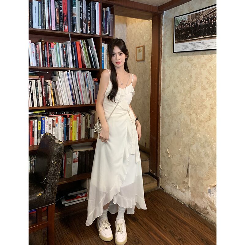フリルサスペンダードレス女性夏バージョン 2023 新しいミッドレングス不規則なウエスト痩身 A ラインスカート サマー 夏物 Aライン missk91548107555